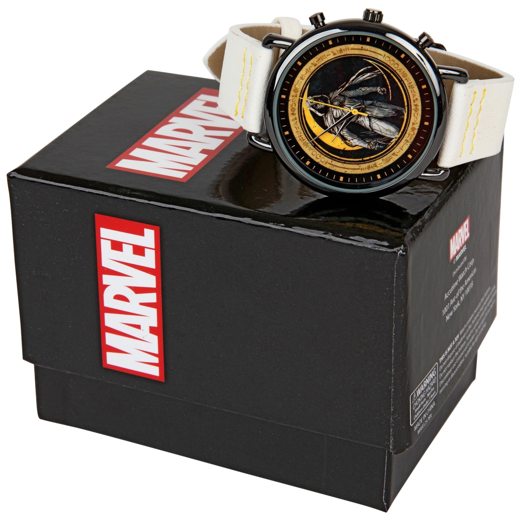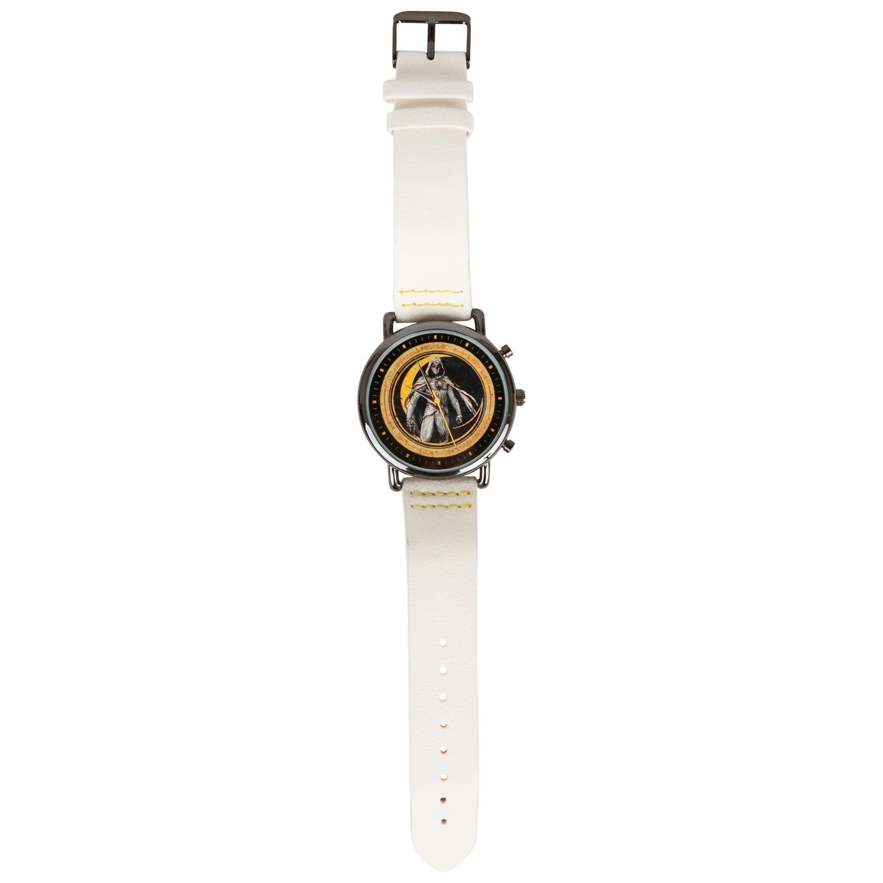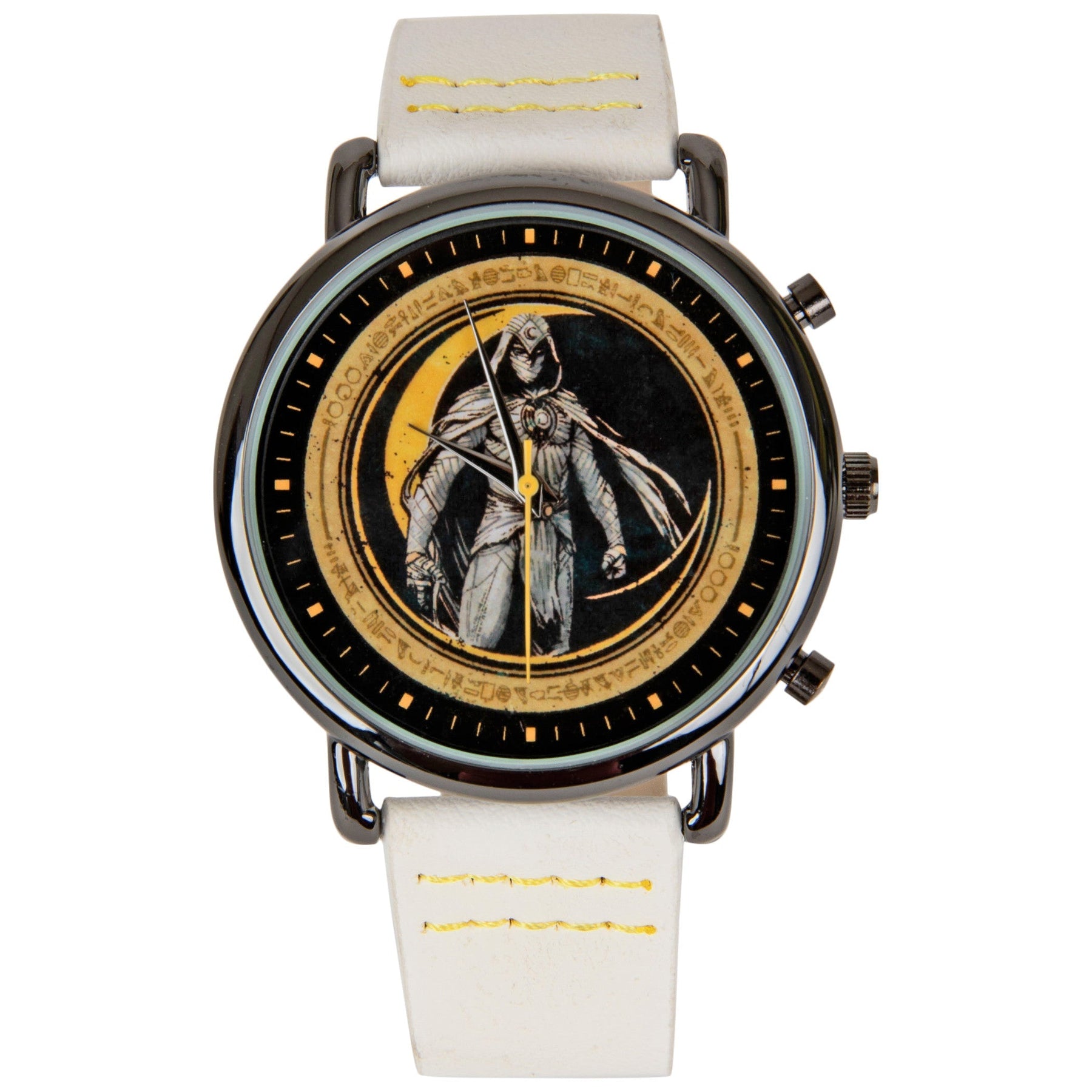 Make sure you're on time to pick up Khonshu from the airport with the help of this officially licensed Marvel Studios Moon Knight Vegan Leather Analog Watch. This stylish Marvel Analog Watch features a cool Moon Knight character design on its face and a wrist strap made from vegan leather.