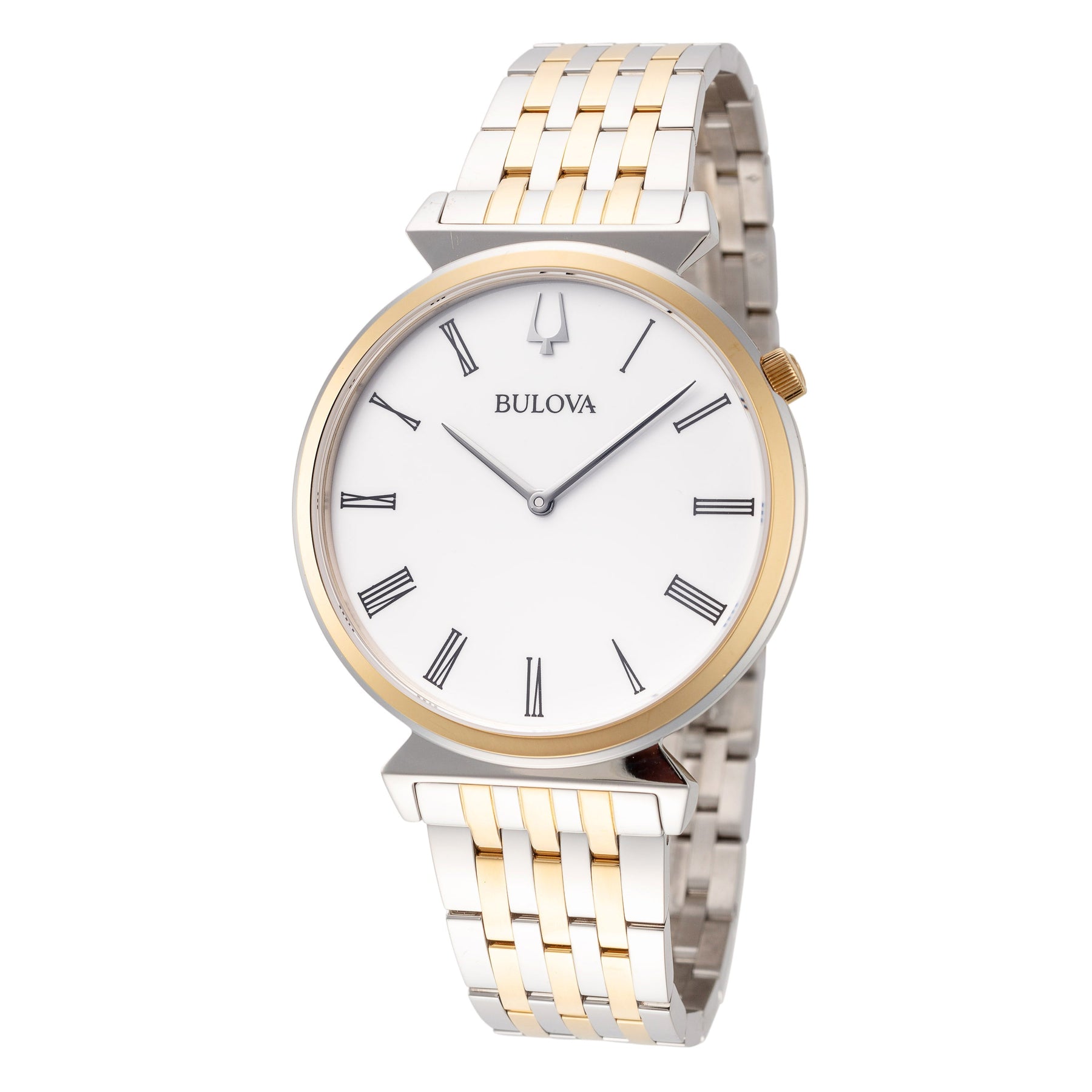 Collection Name: Regatta, Case Shape: Round, Case Material: Stainless Steel, Case Width (mm): 38, Case Crystal: Mineral Crystal, Case Water Resistance: 30 m (100 feet), Dial Color: White, Band Type: Bracelet, Band Material: Stainless Steel, Band Color: Silver and Gold, Band Clasp: Deployment Clasp, Movement Type: Quartz, Country of Origin: Made in China