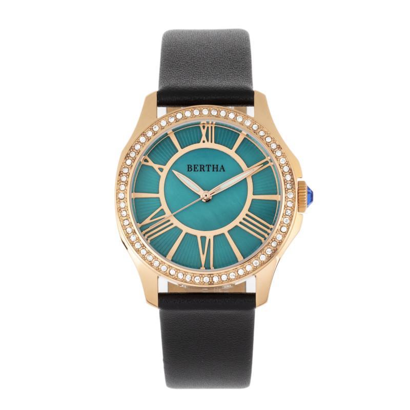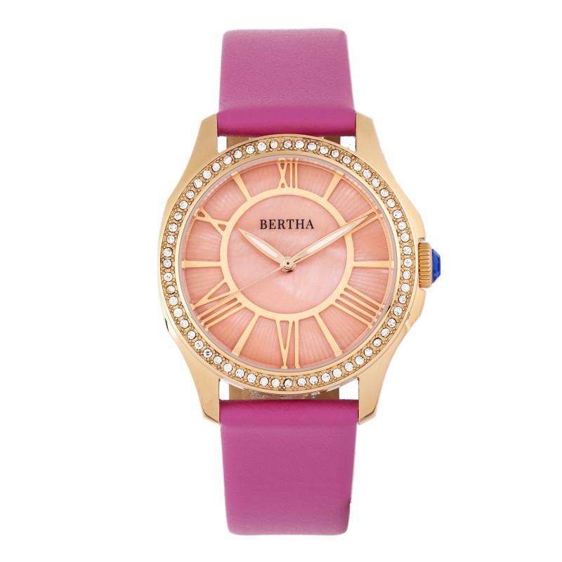 Bertha Donna Mother-of-Pearl Leather-Band Watch