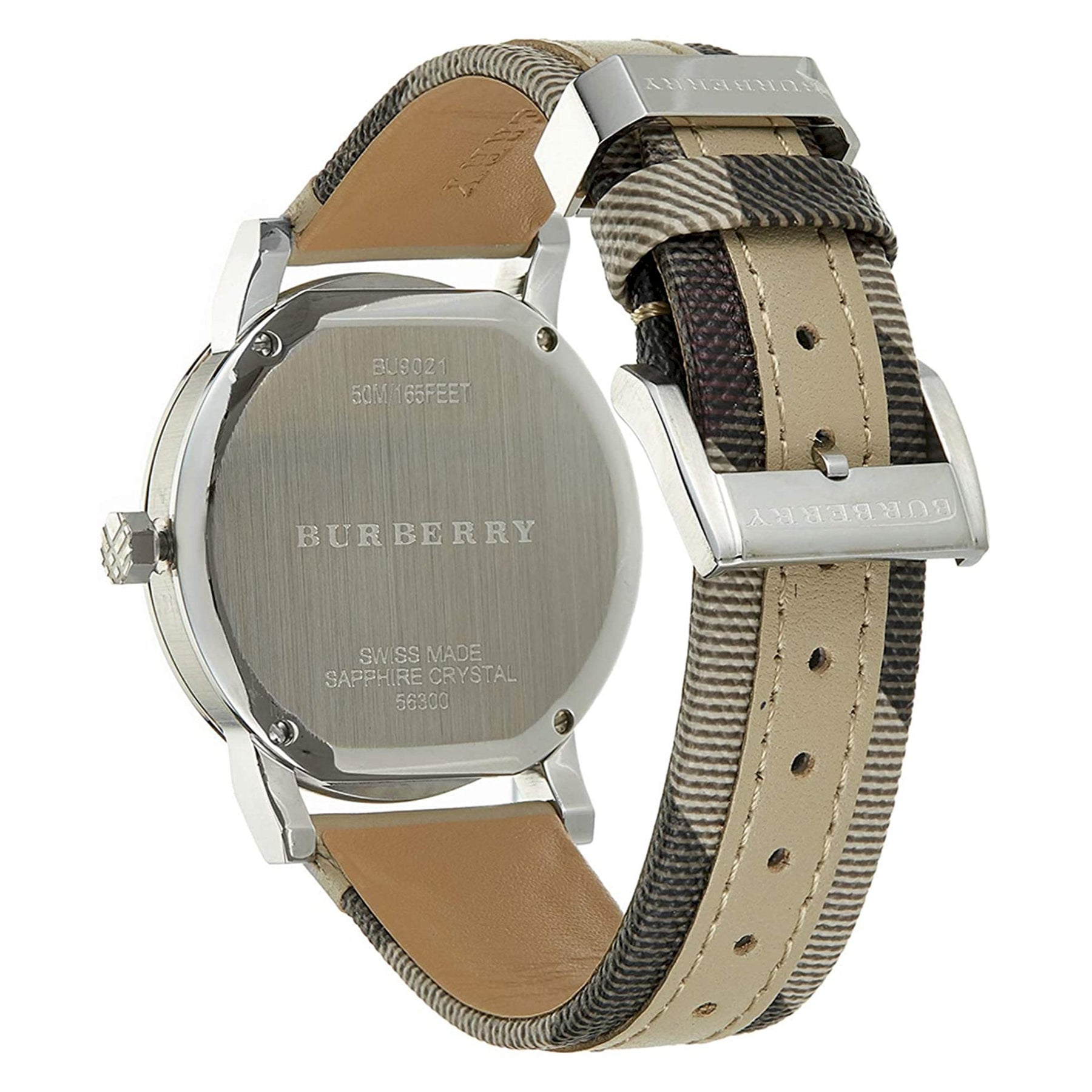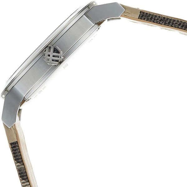 Beige Patterned Leather Strap with Stainless Steel Pin Buckle.