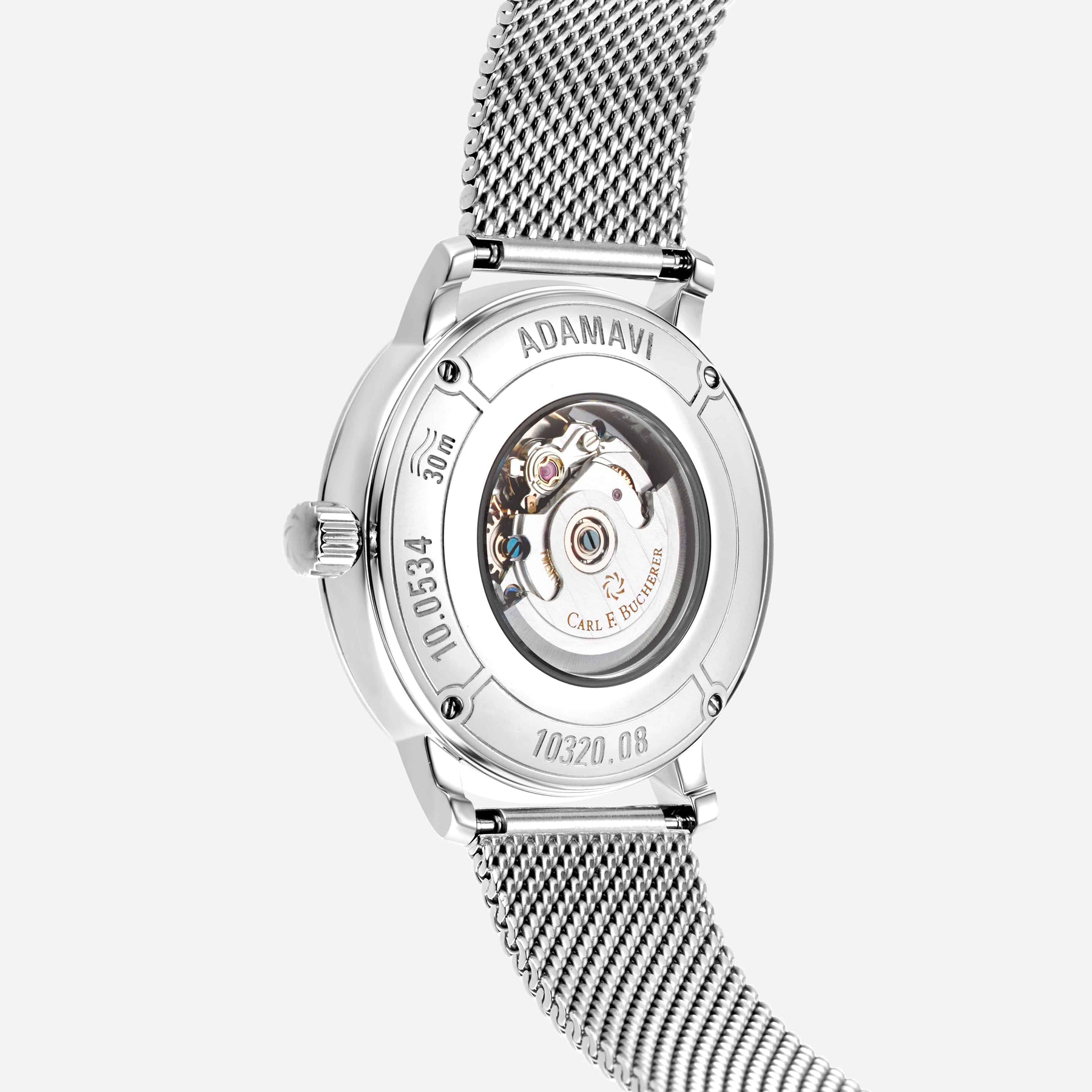 This fine timepiece, marked by an exhibition case back, invites you to admire the intricate movement within. With water resistance up to 30 meters, it effortlessly combines style with practicality.