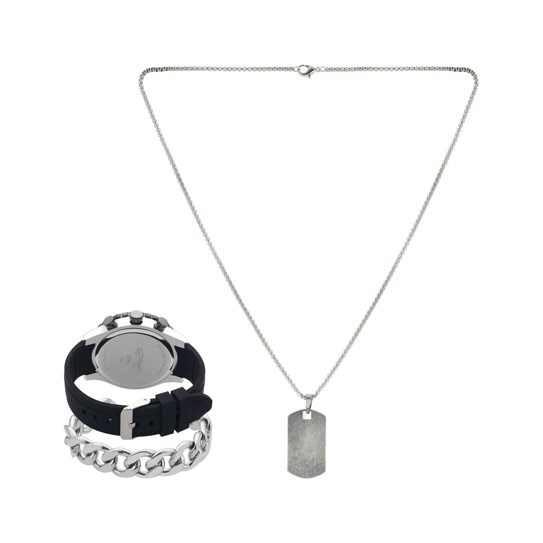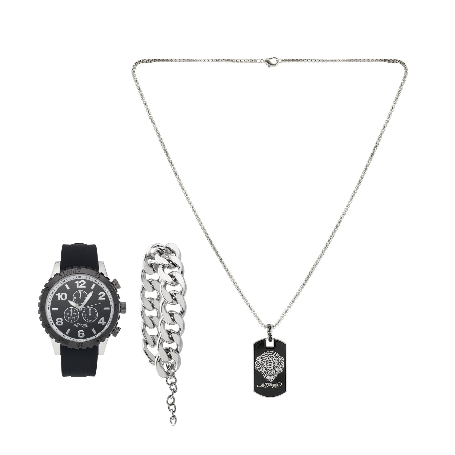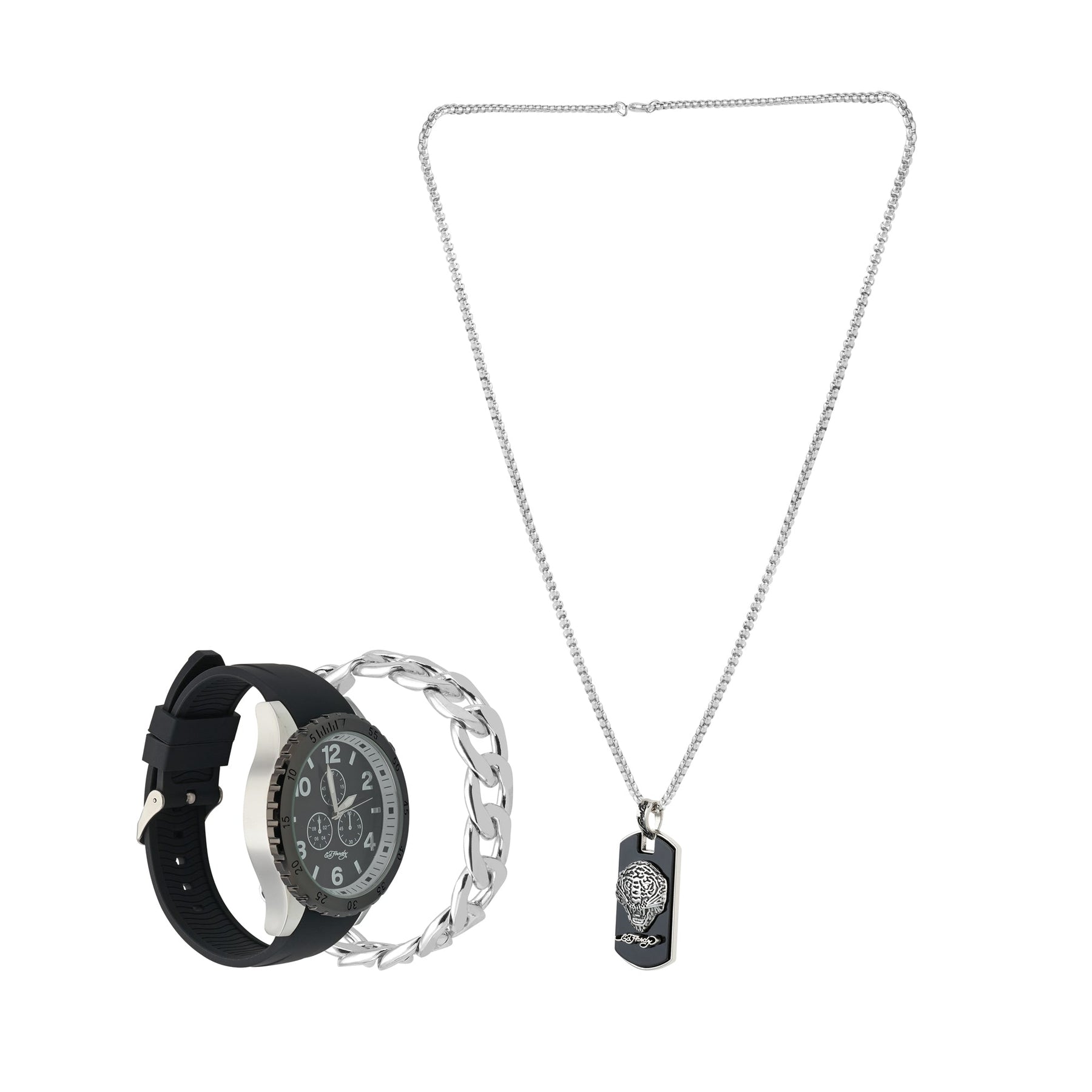This is definitely one of the best watch designs of Don Ed Hardy. The set comes with dog tag pendant necklace and a matching cuban link chain bracelet. The design is a definition and projection of individuality. Perfect gift idea for all occasions. Style 9749S-42-G02