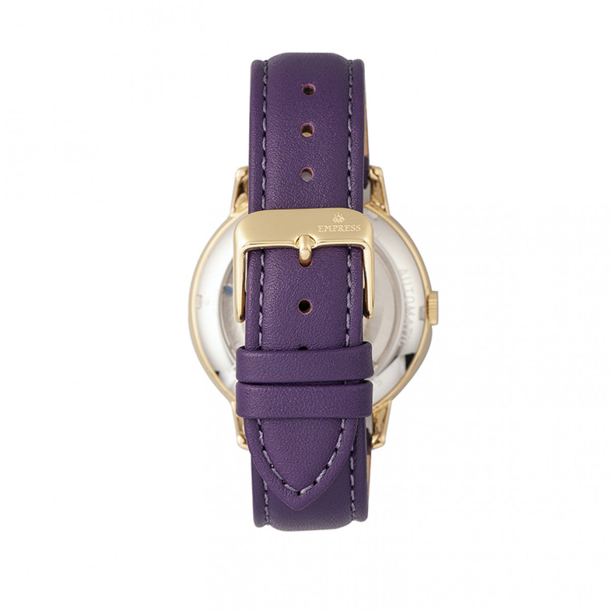 Empress Quinn Automatic MOP Semi-Skeleton Dial Leather-Band Watch - Purple