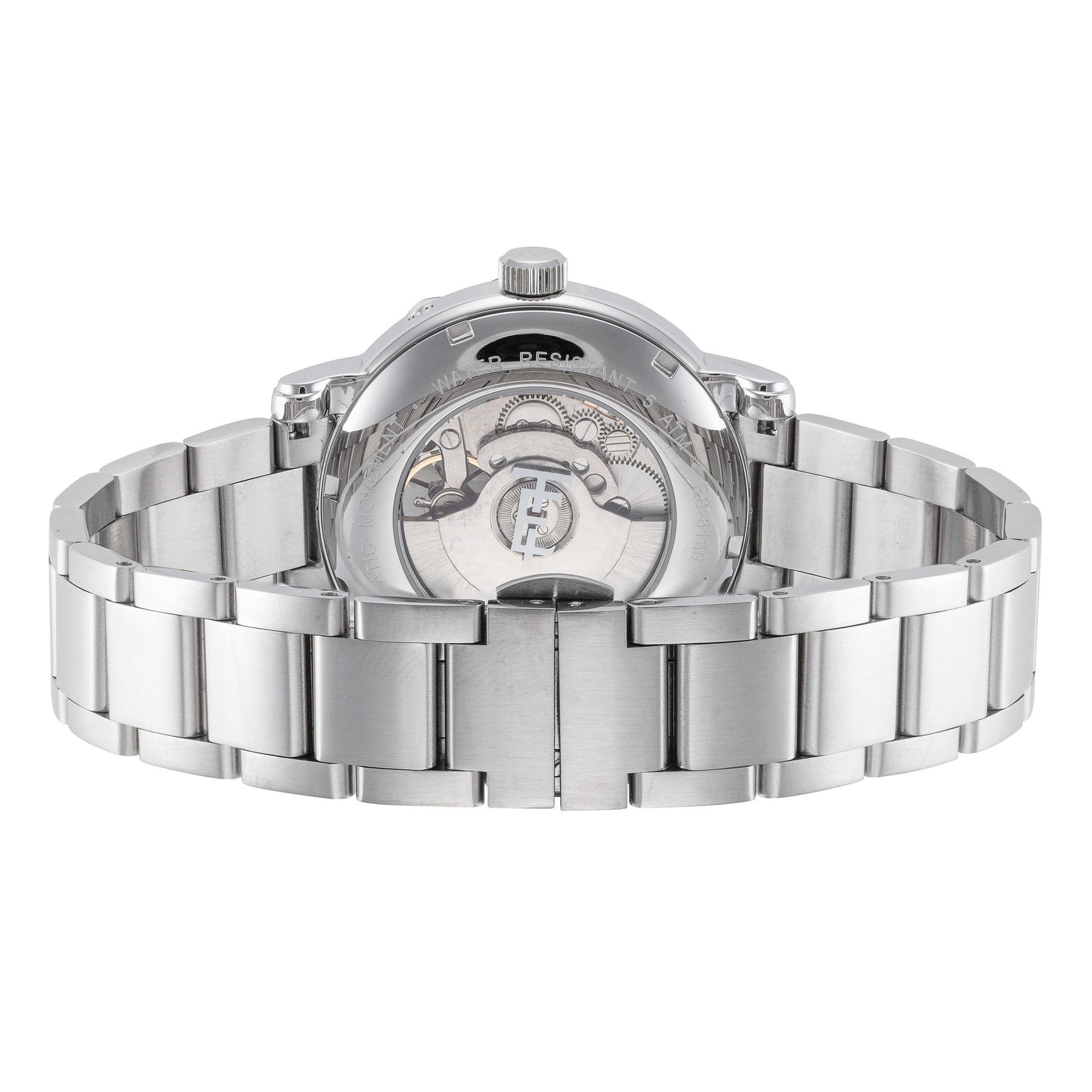 Longcase Collection, Men's Round, Stainless Steel, Mineral Crystal, 50 m (165 feet) Water Resistance, Leather Band,Deployment Clasp, Automatic Watch 8 in. band