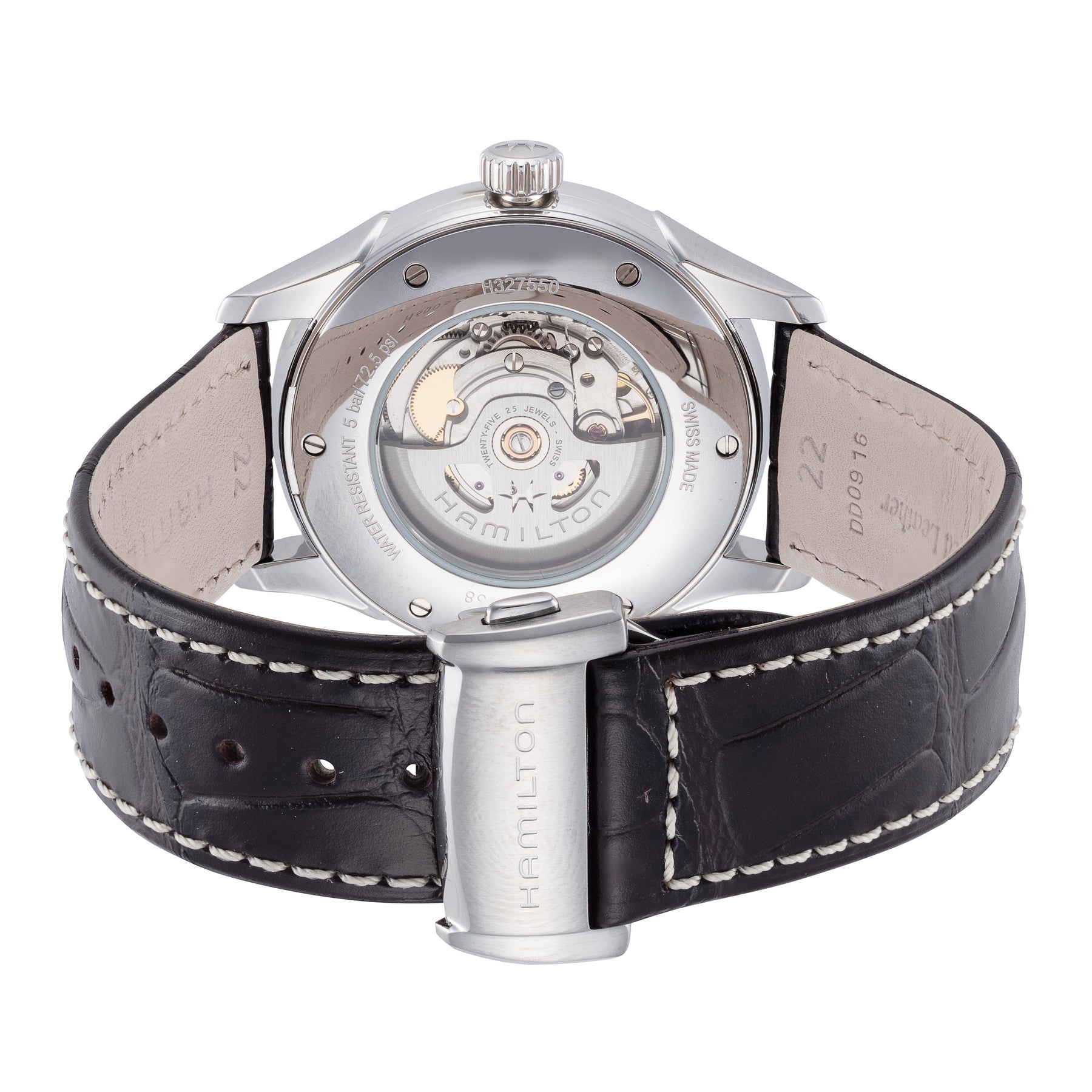 Jazzmaster Viewmatic Collection, Men's Round, Stainless Steel, Sapphire Crystal Scratch Resistant, 50 m (165 feet) Water Resistance, Leather Band,Deployment Clasp, Automatic Watch 8 in. band