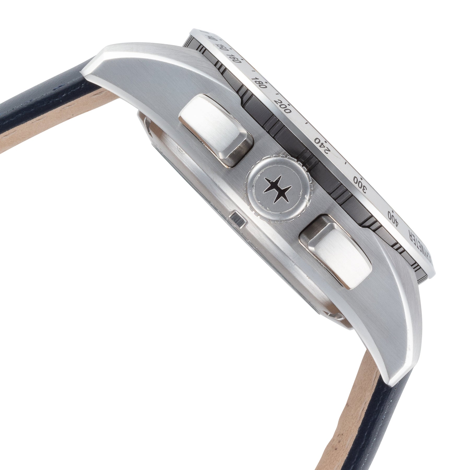 Case Material: Stainless Steel - Case Diameter: 43mm - Case Crystal: Sapphire Crystal Scratch Resistant - Water Resistance: 100 m (330 feet) - Dial Color: Blue - Band: Blue Leather Strap - Movement: Automatic - Features: Chronograph - Made in Switzerland