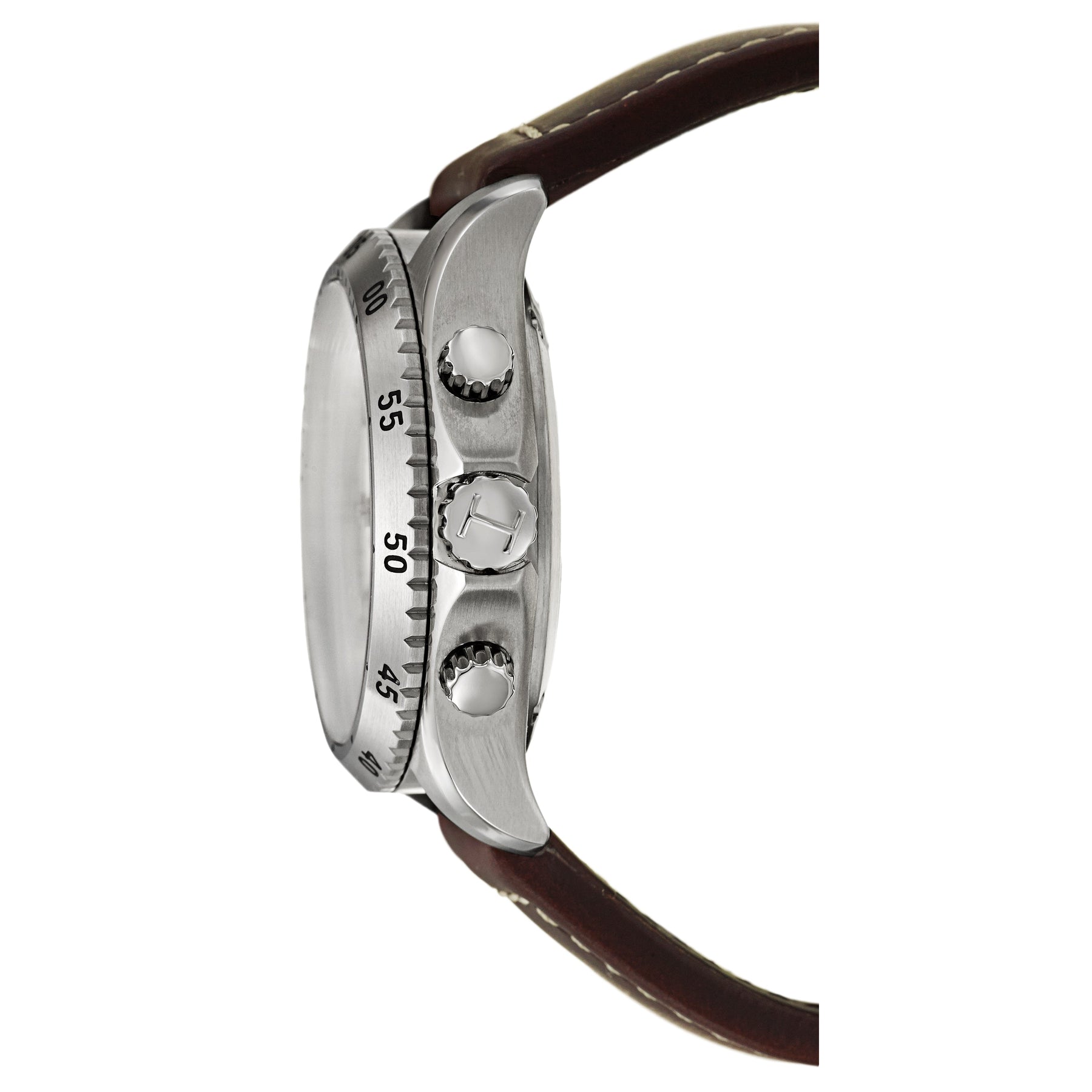 Case Material: Stainless Steel - Case Diameter: 40mm - Case Crystal: Sapphire Crystal Scratch Resistant - Water Resistance: 100 m (330 feet) - Dial Color: Silver - Band: Brown Cream Stitching Leather Strap - Movement: Quartz - Features: - Made in Switzerland