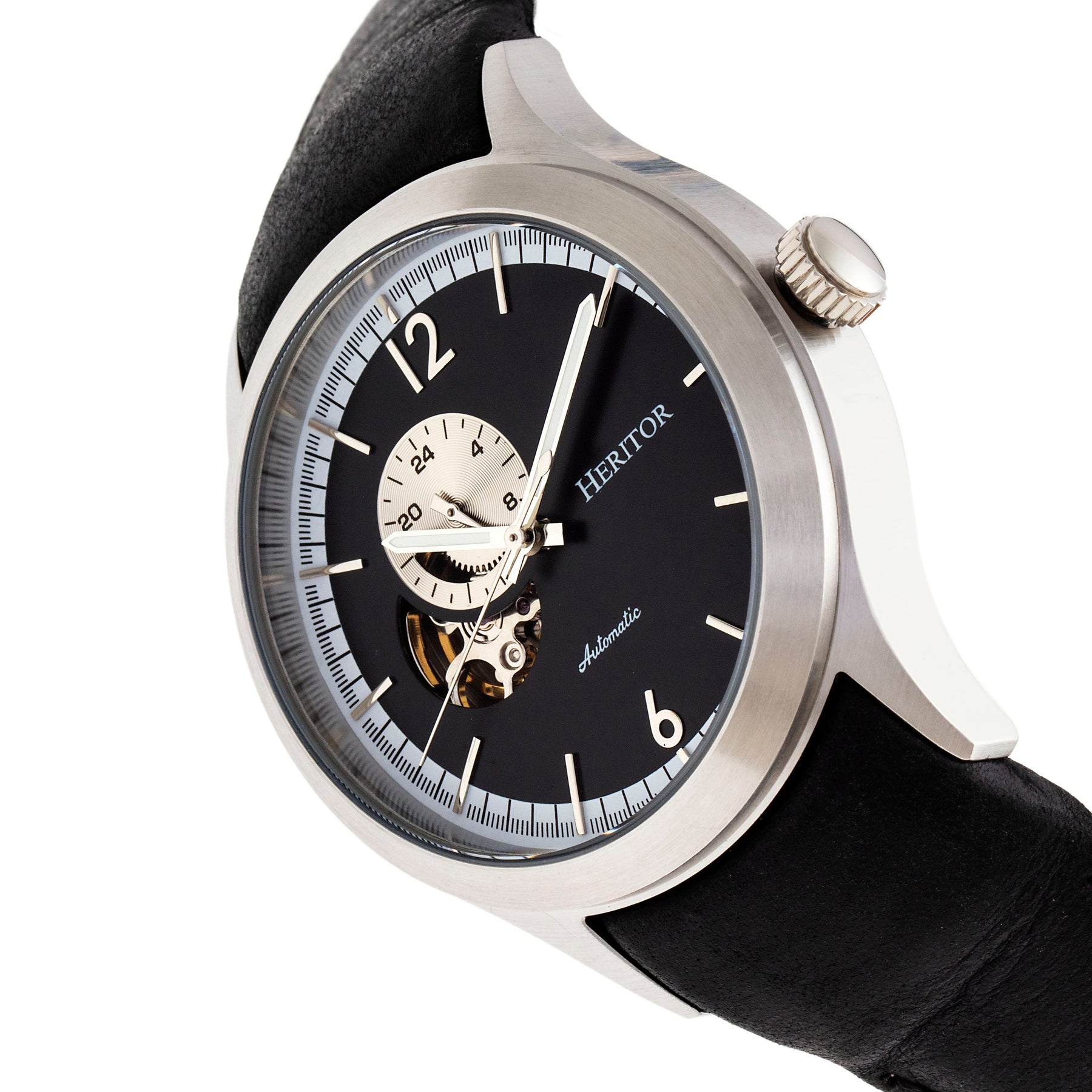 Heritor Automatic Antoine Semi-Skeleton Leather-Band Watch - Silver/Black
