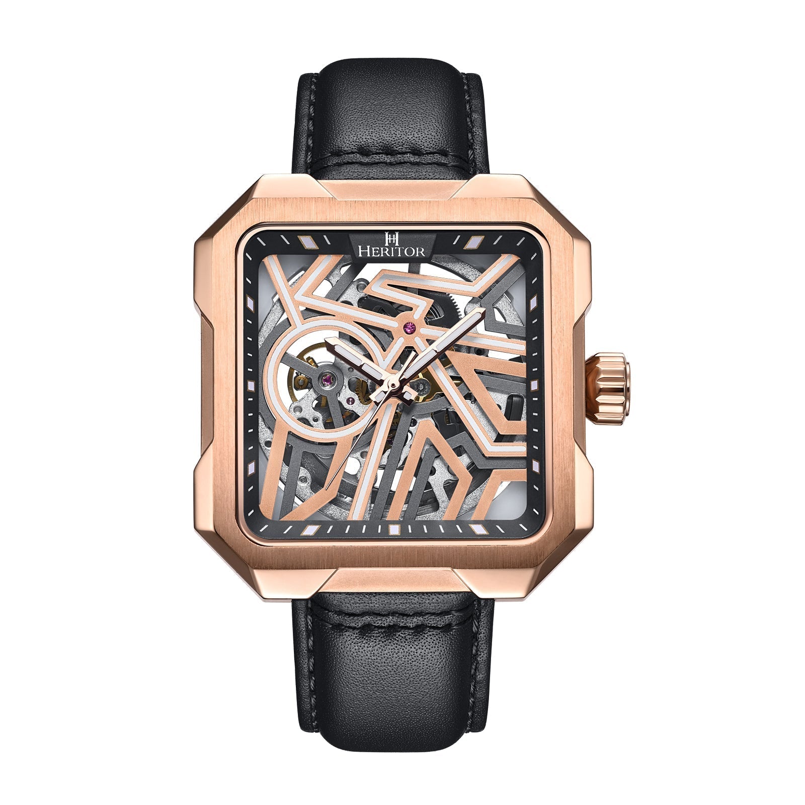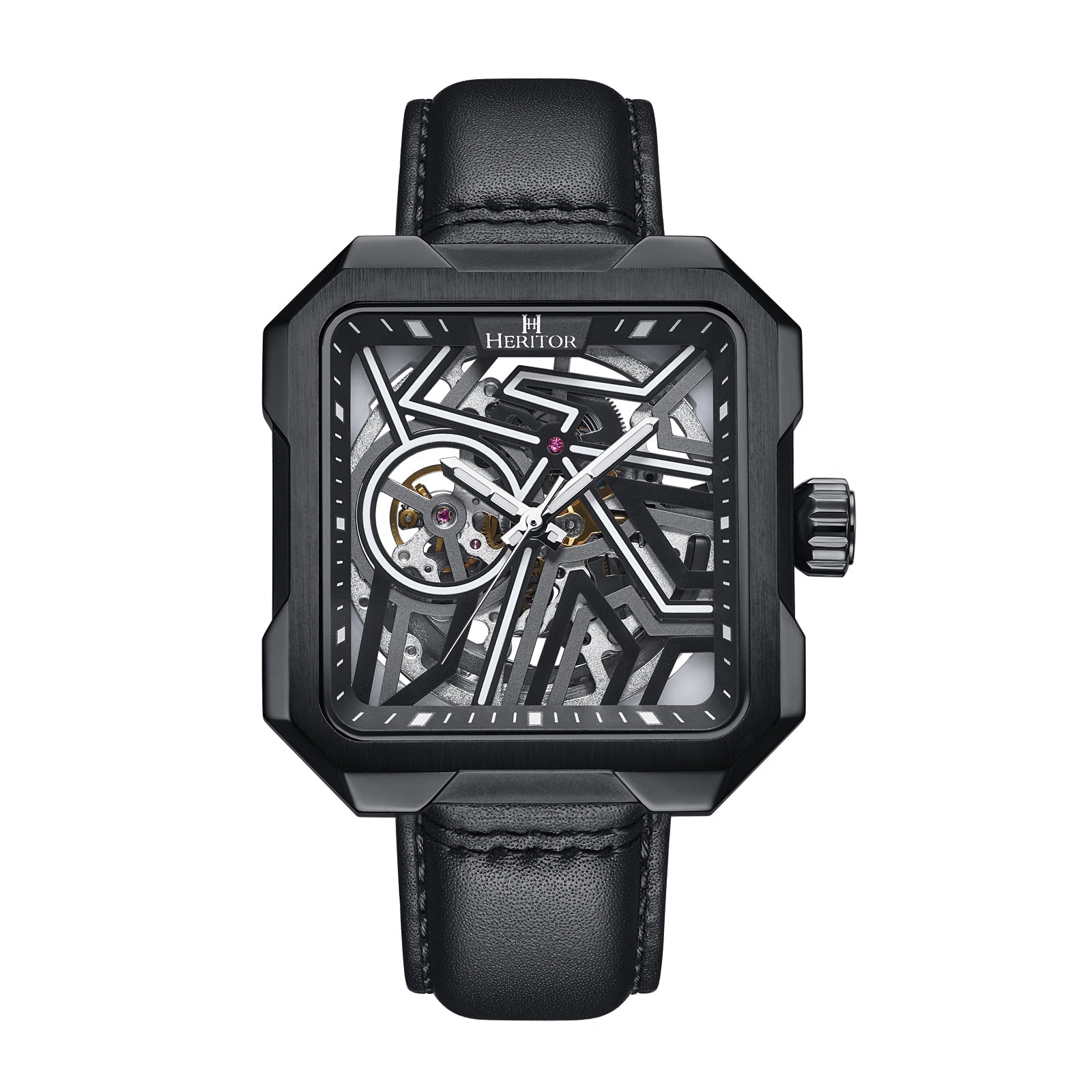 Heritor Automatic Campbell Leather-Band Skeleton Watch
