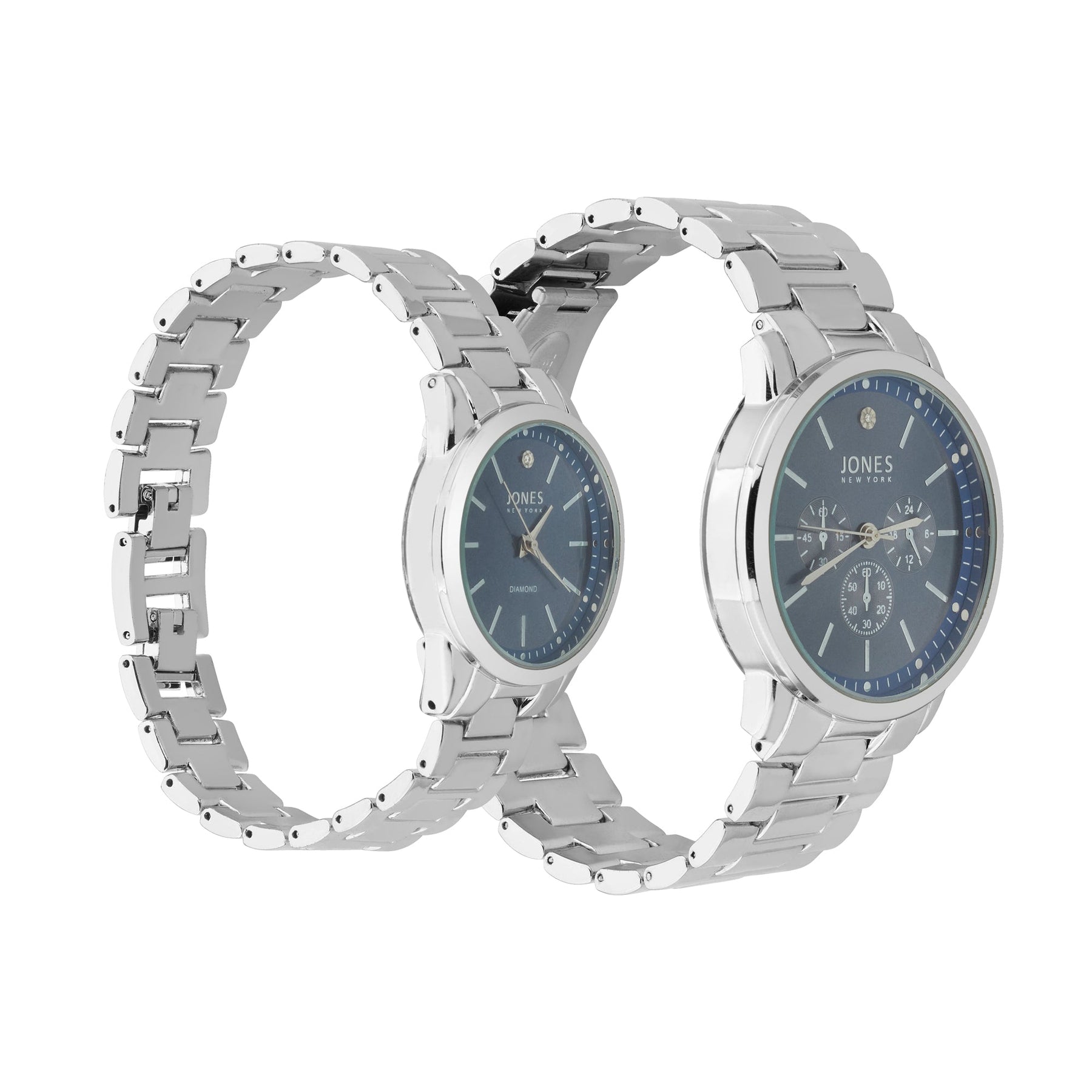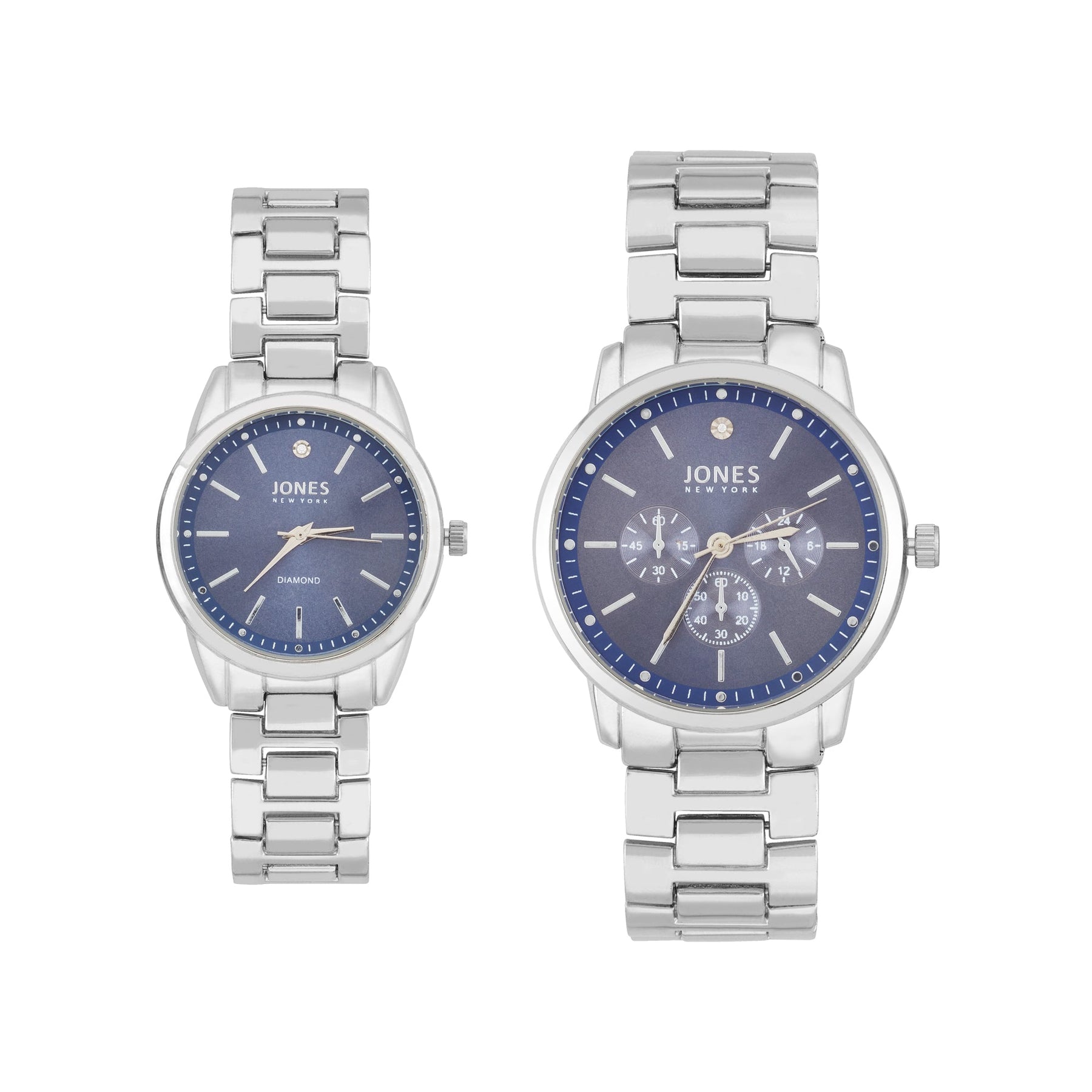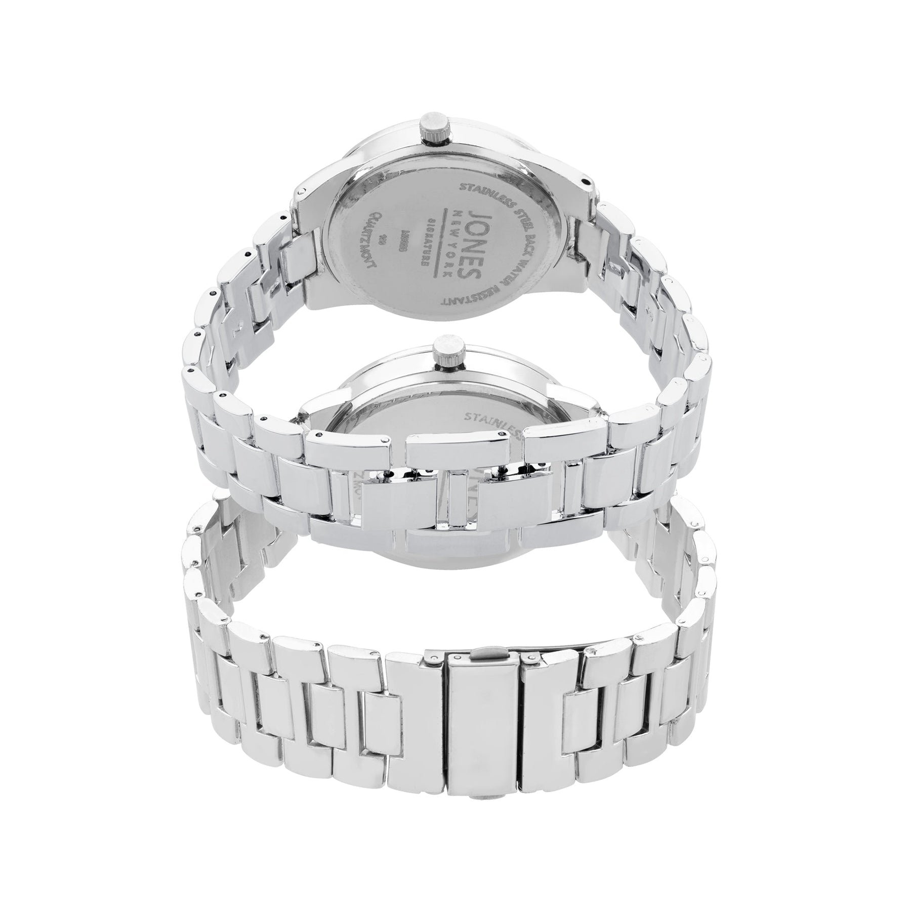 The Jones New York 2 piece analog watch set is a perfect gift for couples who love staying on time. This set includes two elegant watches crafted with shiny silver tone metal and featuring a modern analog design. Both watches have a classic round face accentuated by a silver band that rests on your wrist. The simple, contemporary design allows them to be tastefully dressed up or dressed down with whatever the occasion calls for. The watches feature quartz movements for accuracy, a case thickness of 9mm and 8mm for a lightweight fit and reliable performance. With this gift set, you can ensure your loved ones are always on time and in style. Style M0023S-42-K28