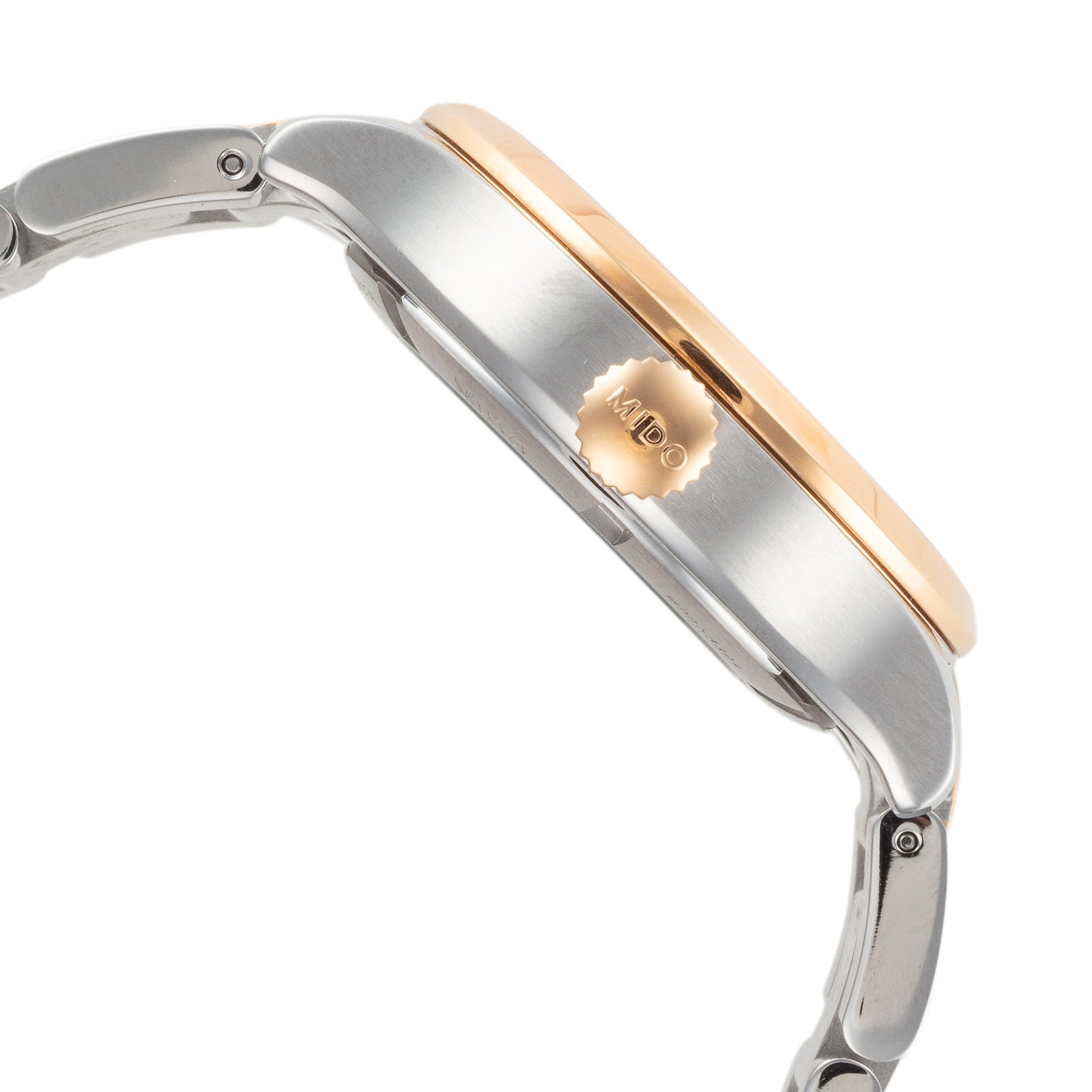 Collection Name: Multifort, Case Shape: Round, Case Material: Stainless Steel, Case Width (mm): 38, Case Crystal: Sapphire Crystal Scratch Resistant, Case Water Resistance: 100 m (330 feet), Dial Color: Silver, Band Type: Bracelet, Band Material: Stainless Steel, Band Color: Silver and Rose Gold, Band Clasp: Deployment Clasp, Movement Type: Automatic, Country of Origin: Made in Switzerland