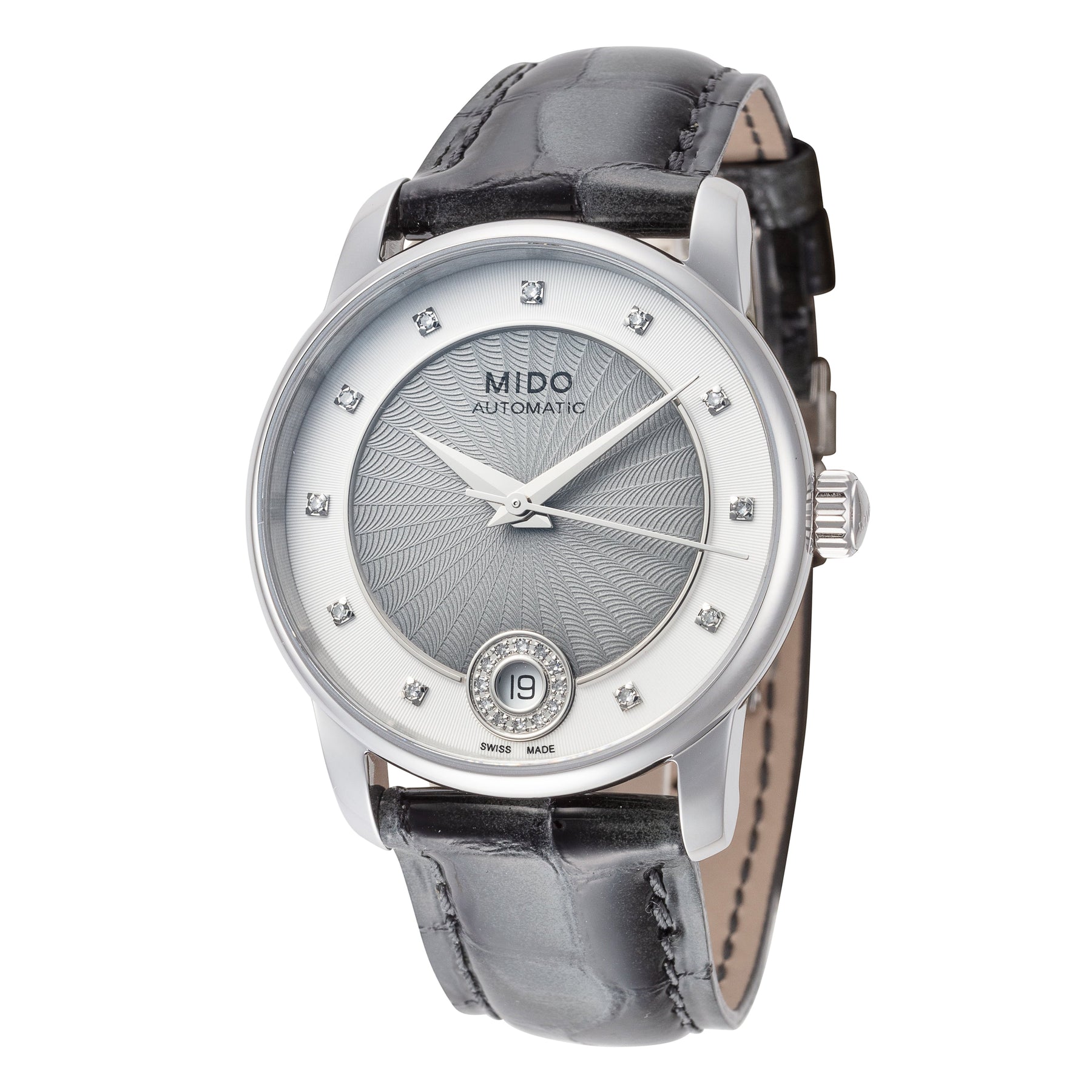 Mido Women's M0072071603601 Baroncelli 33mm Automatic Watch Collection Name: Baroncelli ; Water Resistance: 50 m (165 feet) ; Dial Color: Silver ; Band Material: Leather ; Band Color: Black ; Movement Type: Automatic