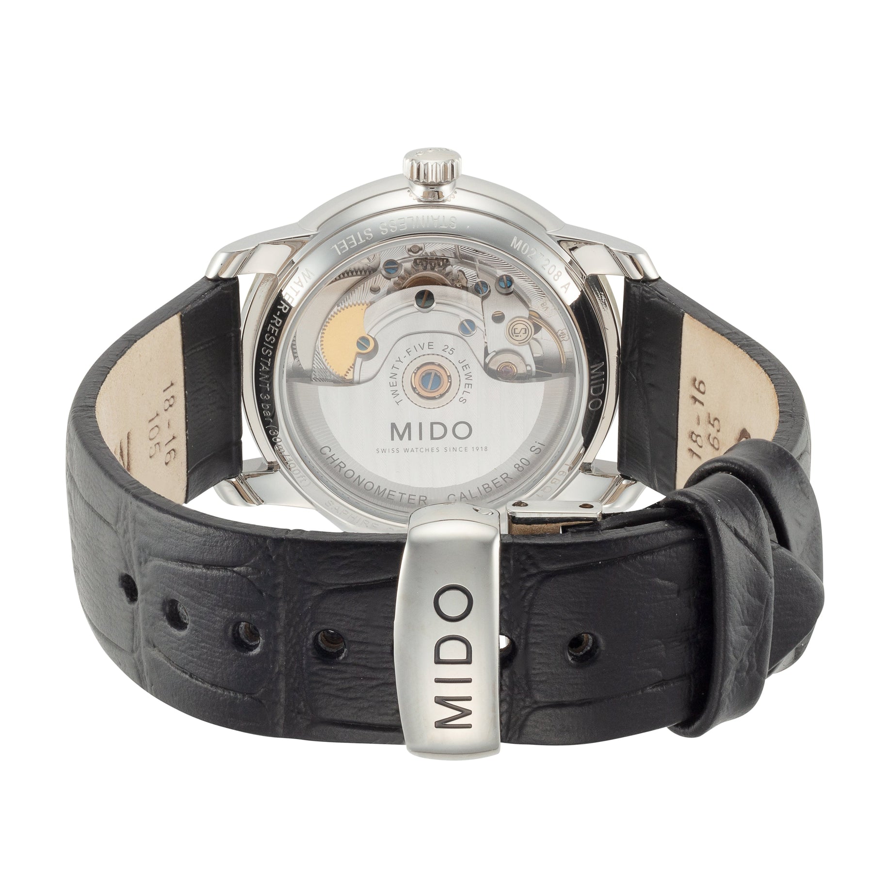 Leather Band, Stainless Steel/ Sapphire Crystal Scratch Resistant Case, 34 mm case width, 9.1 mm case thickness, Baroncelli III Collection, Round Shape, Deployment Clasp Strap Band, Automatic Movement, 30 m (100 feet) Water Resistant, Made in Switzerland