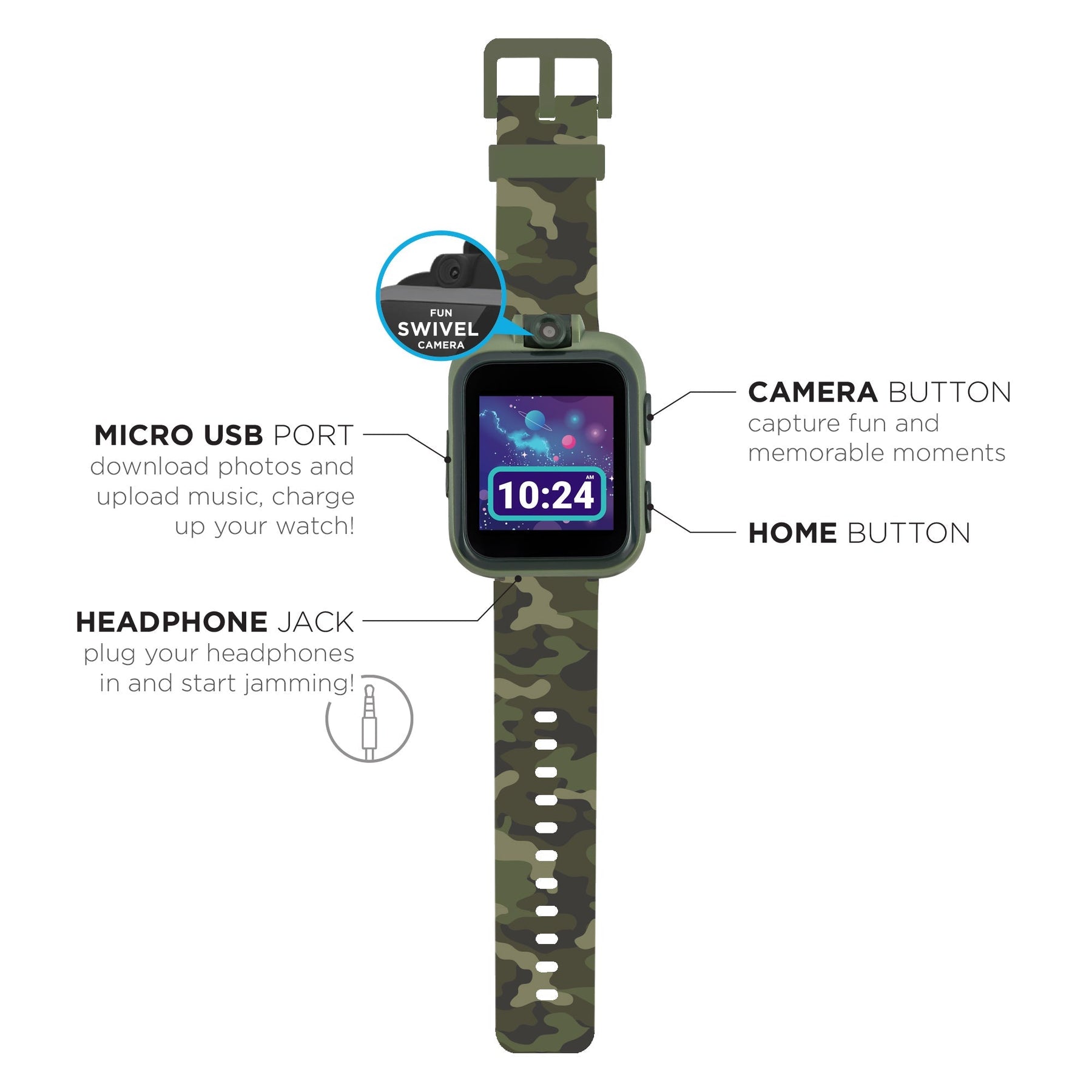 The PlayZoom 2 Kids Smartwatch with headphones is both an educational and fun gift for your child! It comes with features such as a swivel camera, customizable clock faces, 30 learning and active games, 20 tunes to explore, and so much more! Simply plug in the headphone set included to the headphone jack on the watch so your child can listen to their favorite lullabies, melodies, bed time stories, and songs. Plus the PlayZoom doesn't connect to a cellular device and comes with an In Case of Emergency (ICE) Card on the watch, so it's free of GPS tracking and completely safe!