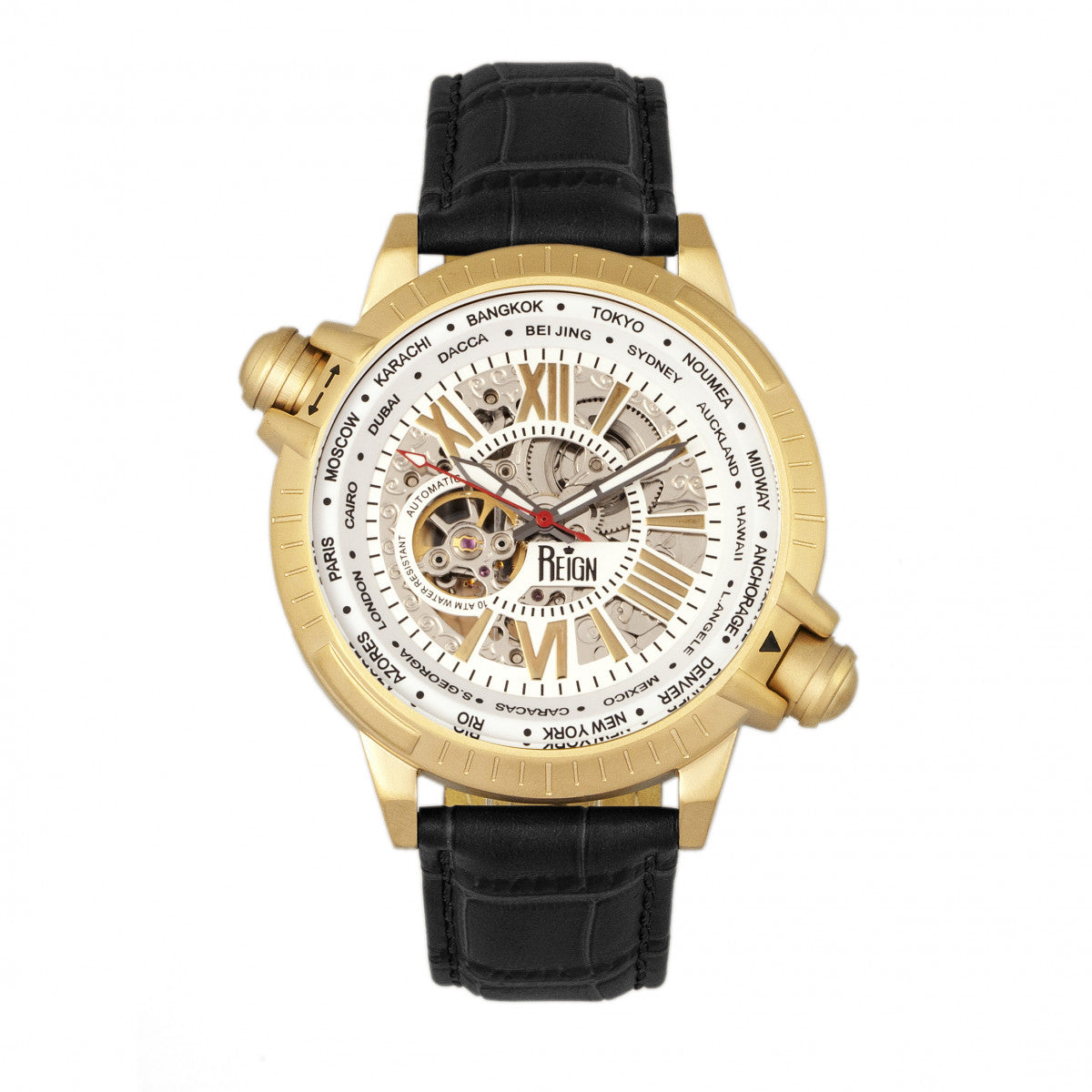 Reign Thanos Automatic Leather-Band Watch - Gold/White