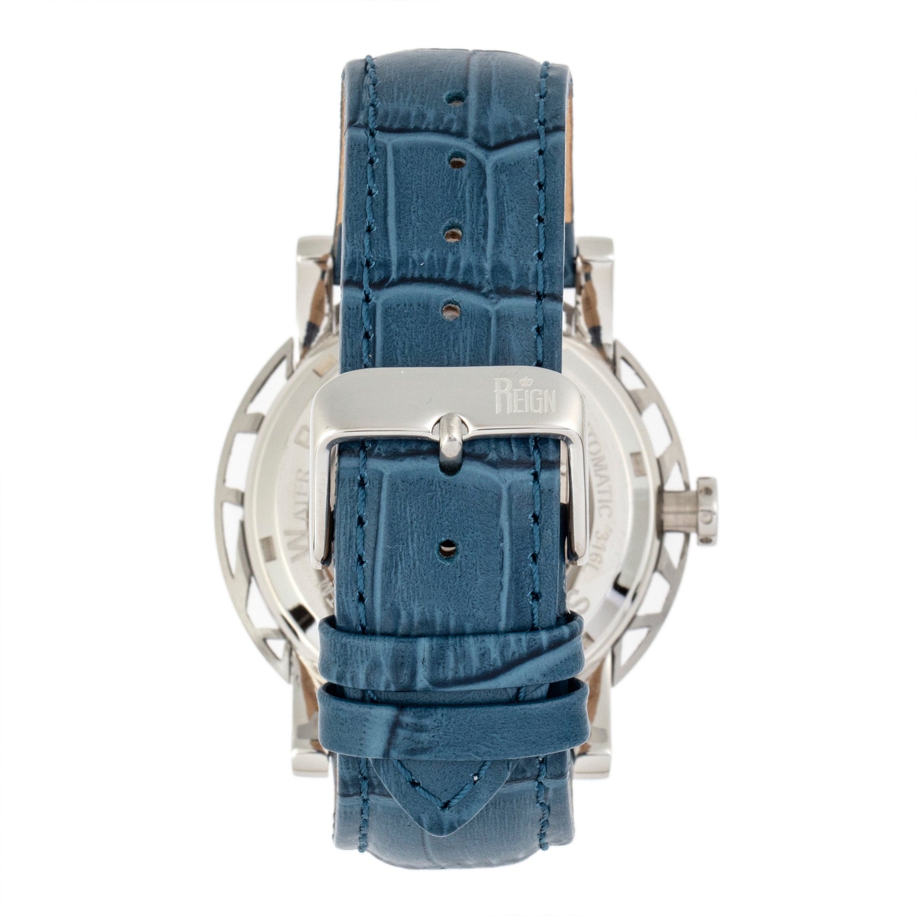 Reign Stavros Automatic Skeleton Leather-Band Watch - Silver/Navy