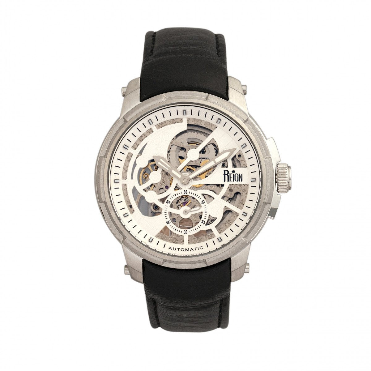 Reign Matheson Automatic Skeleton Dial Leather-Band Watch