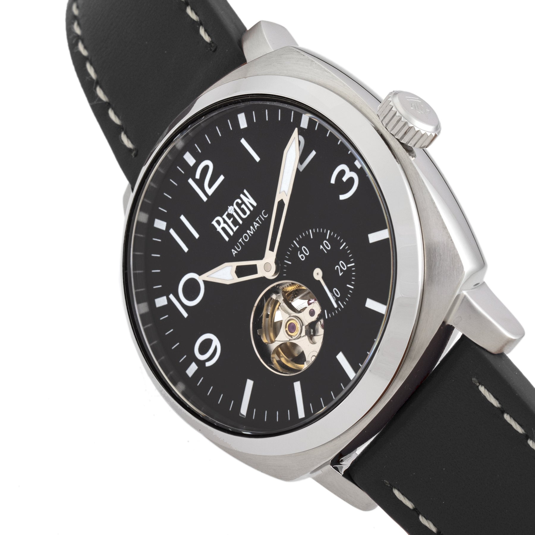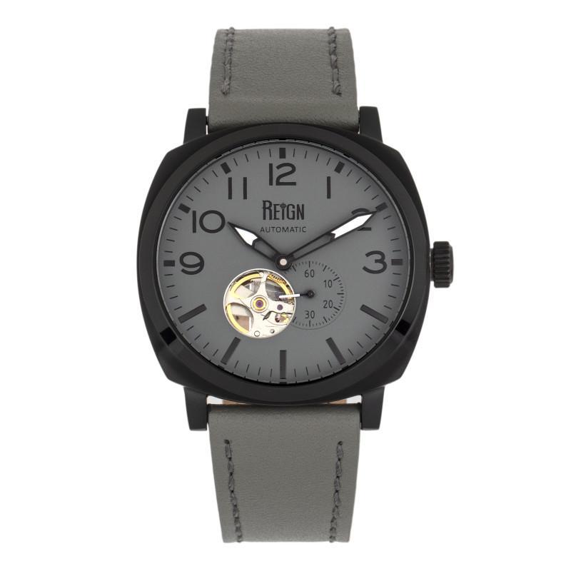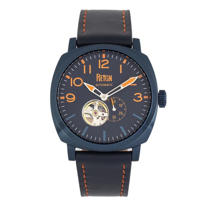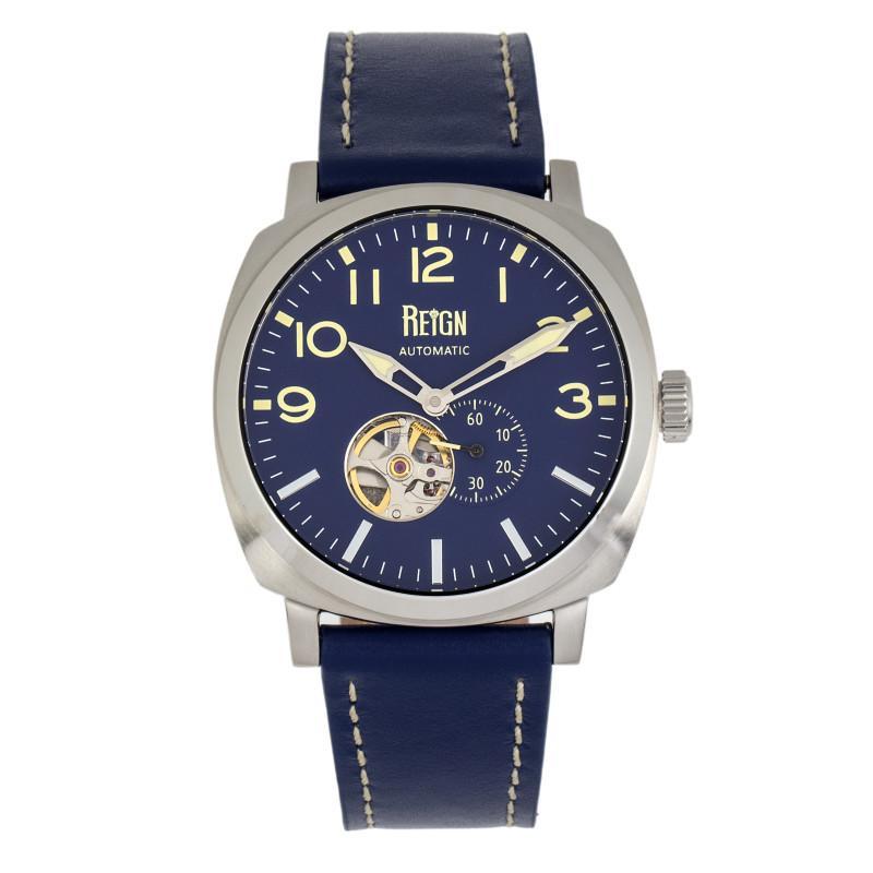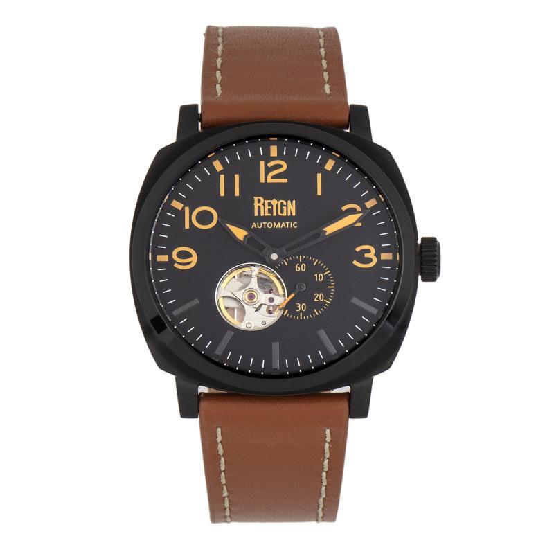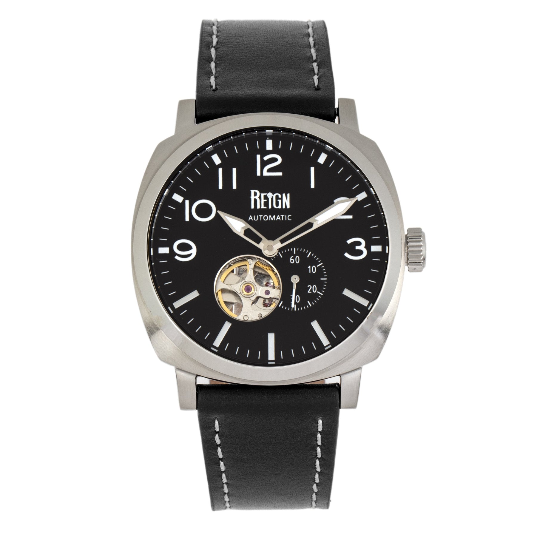 Reign Napoleon Automatic Semi-Skeleton Leather-Band Watch