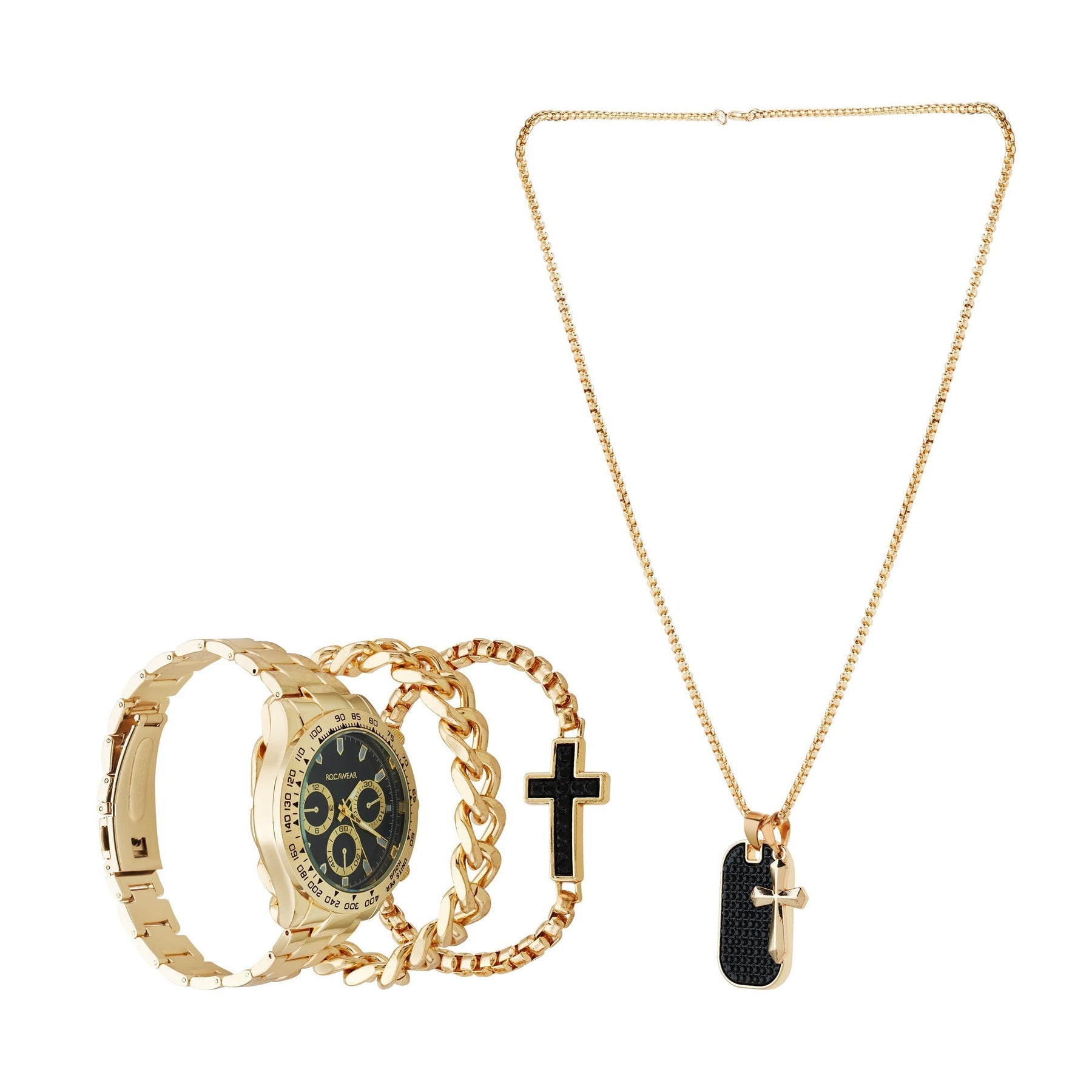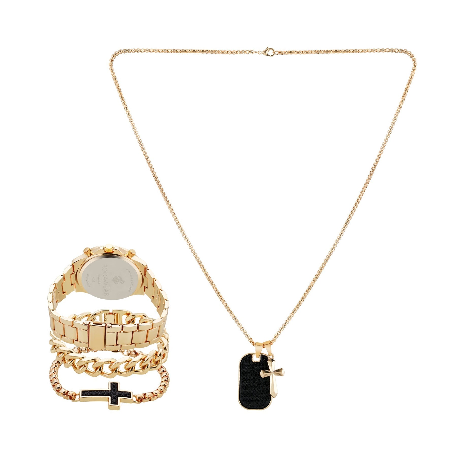 Built to stand up to the stresses of the great outdoors, this durable men’s watch makes great use of a powerfully built, metal case. Comes with matching necklace and bracelet set that are a great accessory to complement your casual outfits. Style 9657G-42-G27
