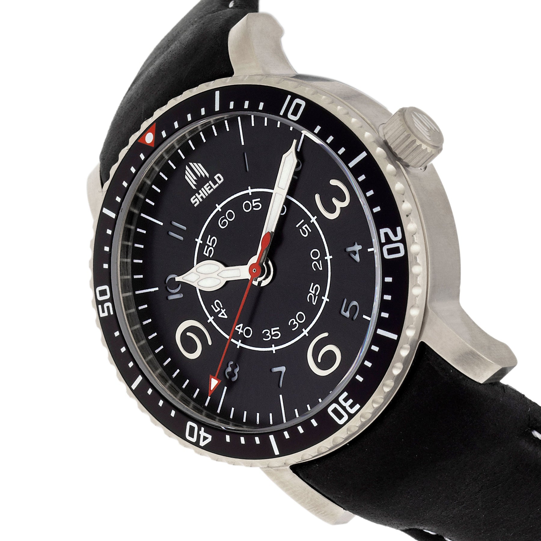 Shield Gilliam Leather-Band Men's Diver Watch - Silver/Black