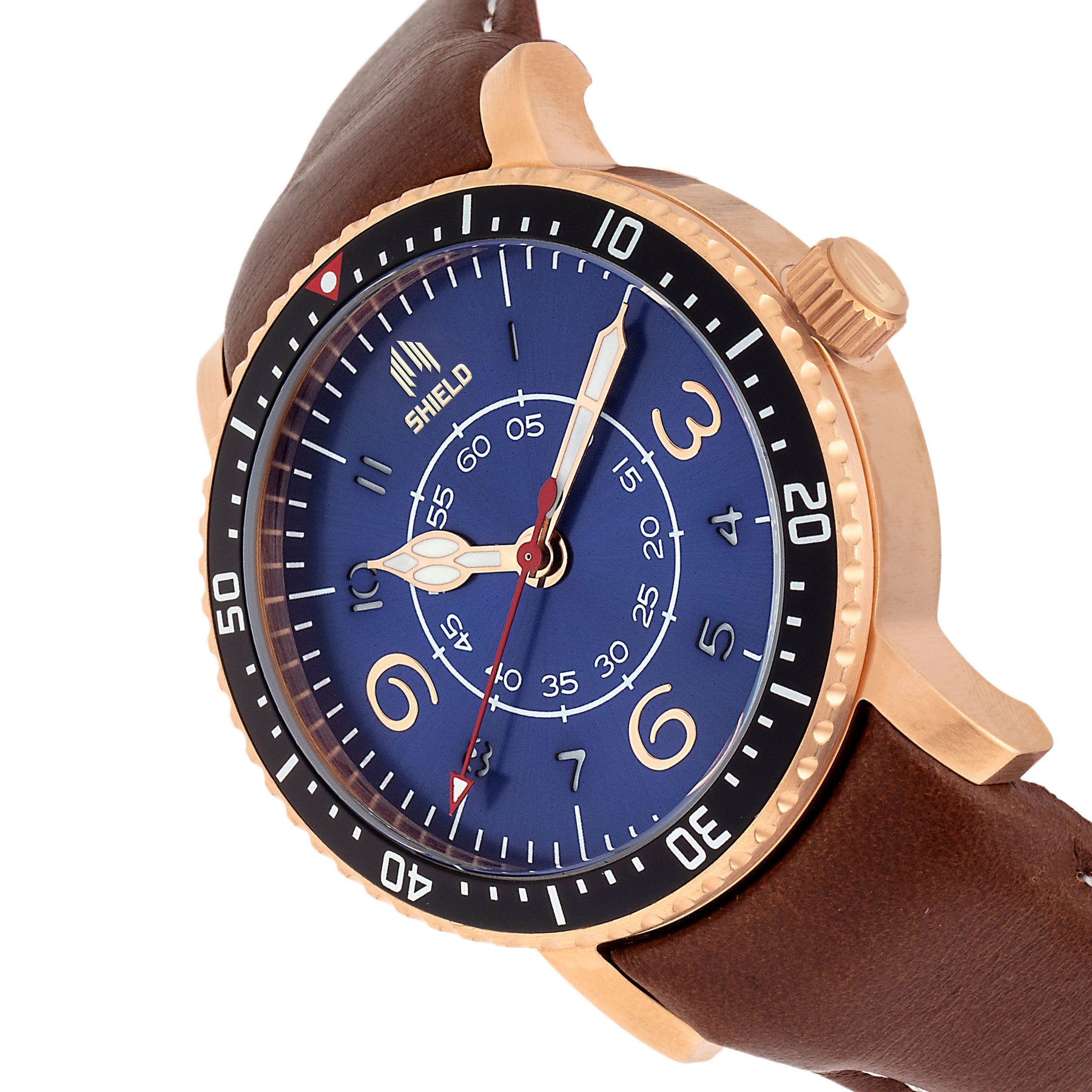 Shield Gilliam Leather-Band Men's Diver Watch - Rose Gold/Blue