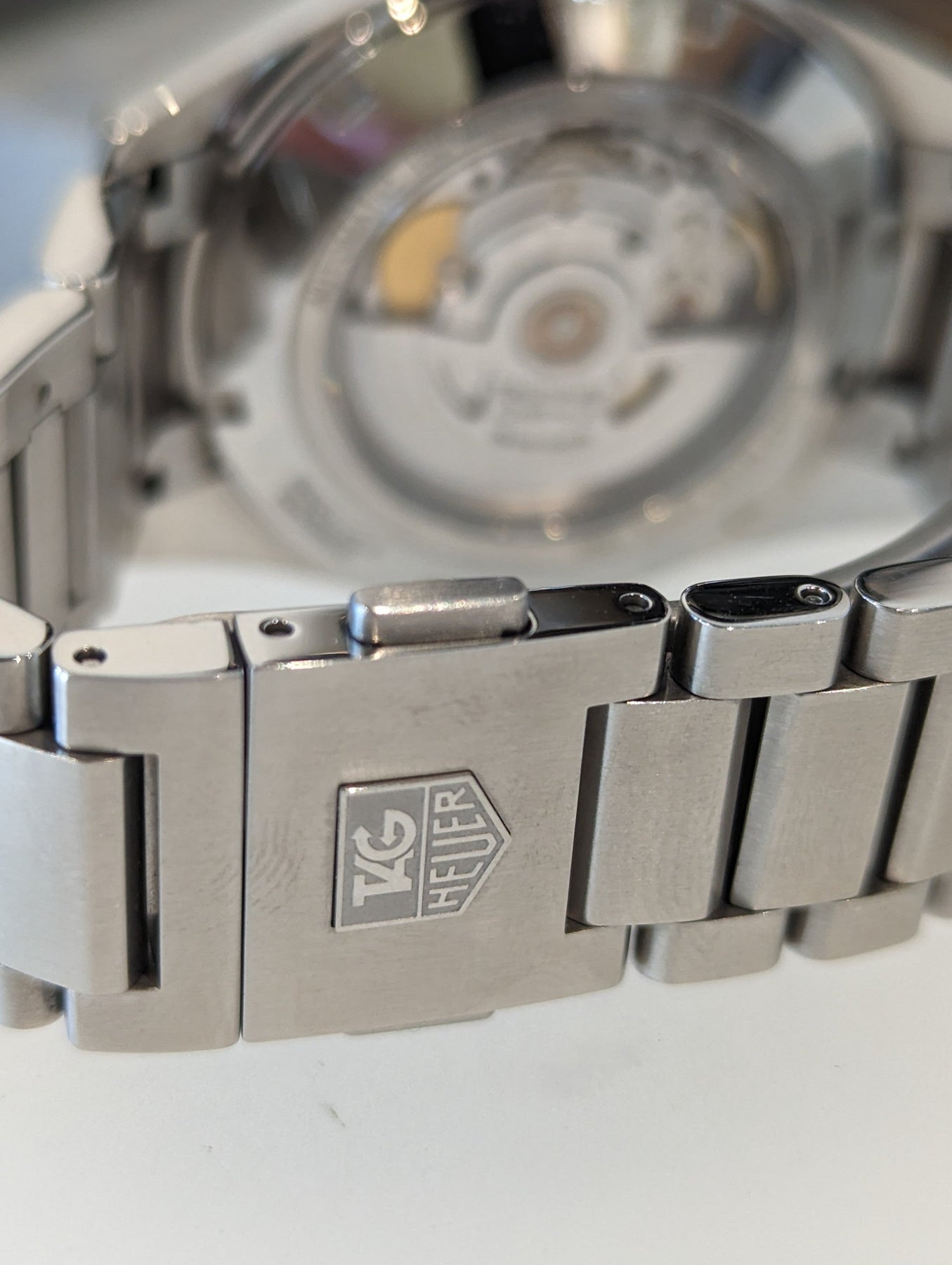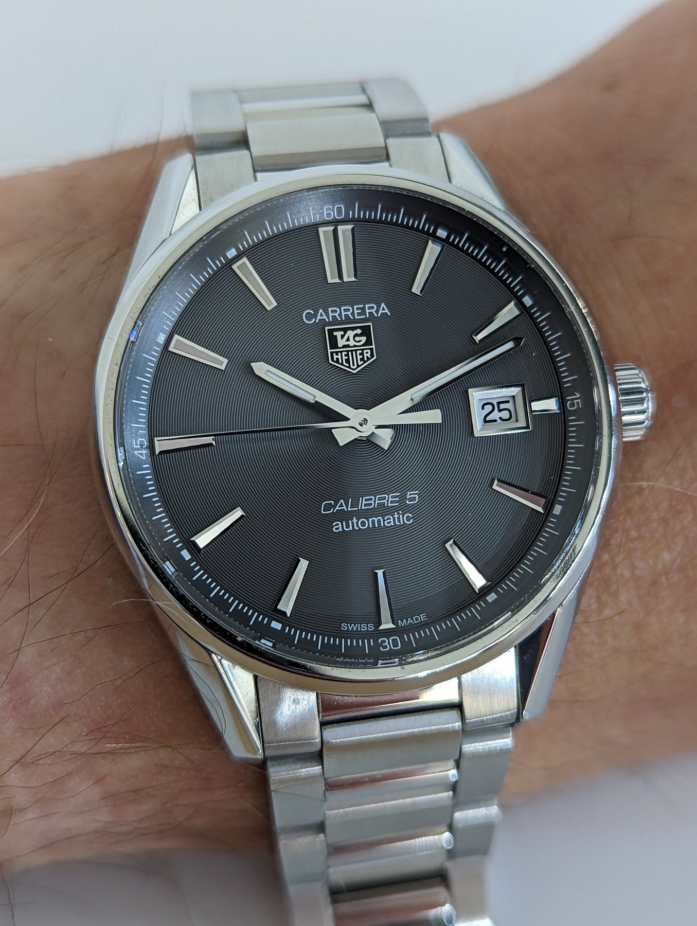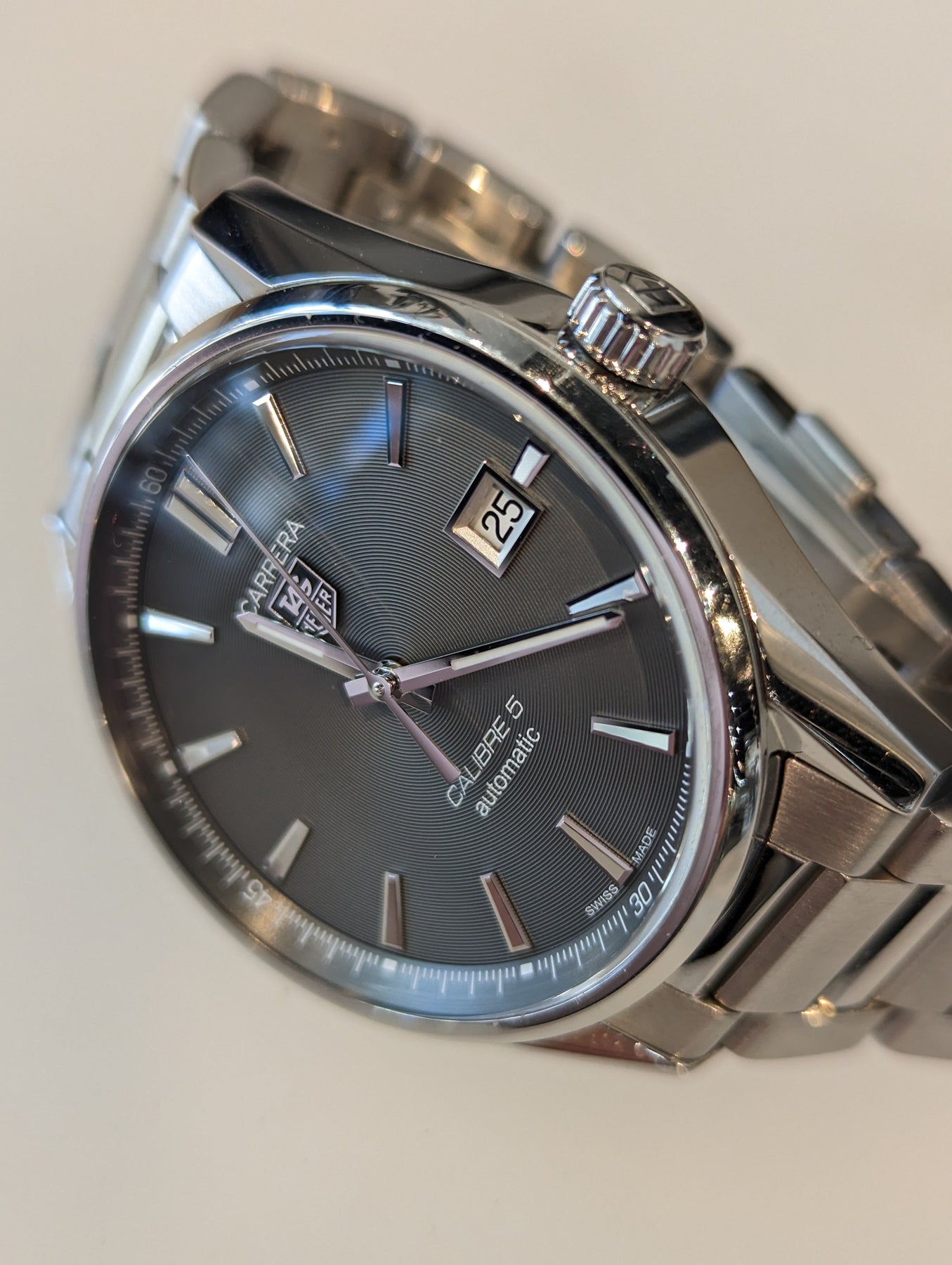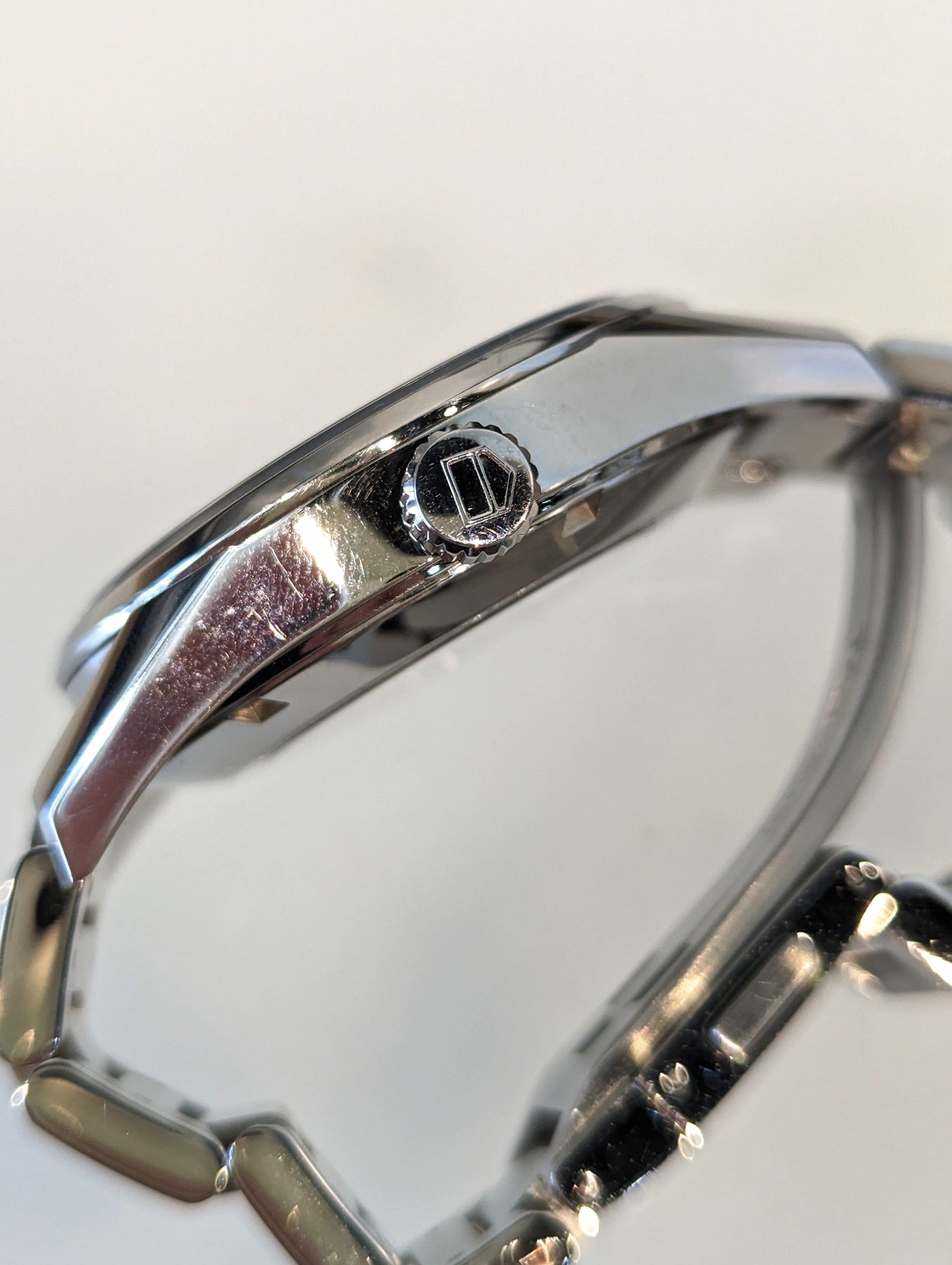 This classy men's watch goes from dressy to casual so easily and is tough enough to endure whatever your day to day brings! The steely grey dial and baton style hour markers give this wristwatch a sleek and clean look. Watch comes with original box but no papers and extra links can be sourced easily.