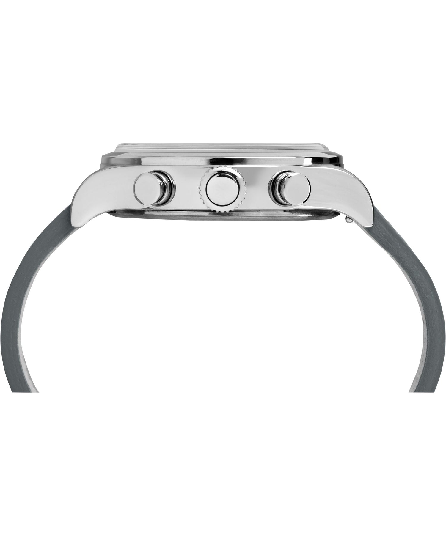 Case Material: Stainless Steel - Case Diameter: 42mm - Case Crystal: Mineral Crystal - Water Resistance: 50 m (165 feet) - Dial Color: Grey - Band: Grey Leather Strap - Movement: Quartz - Features: Chronograph - Made in China