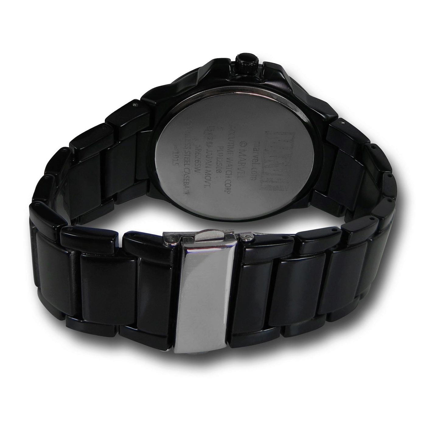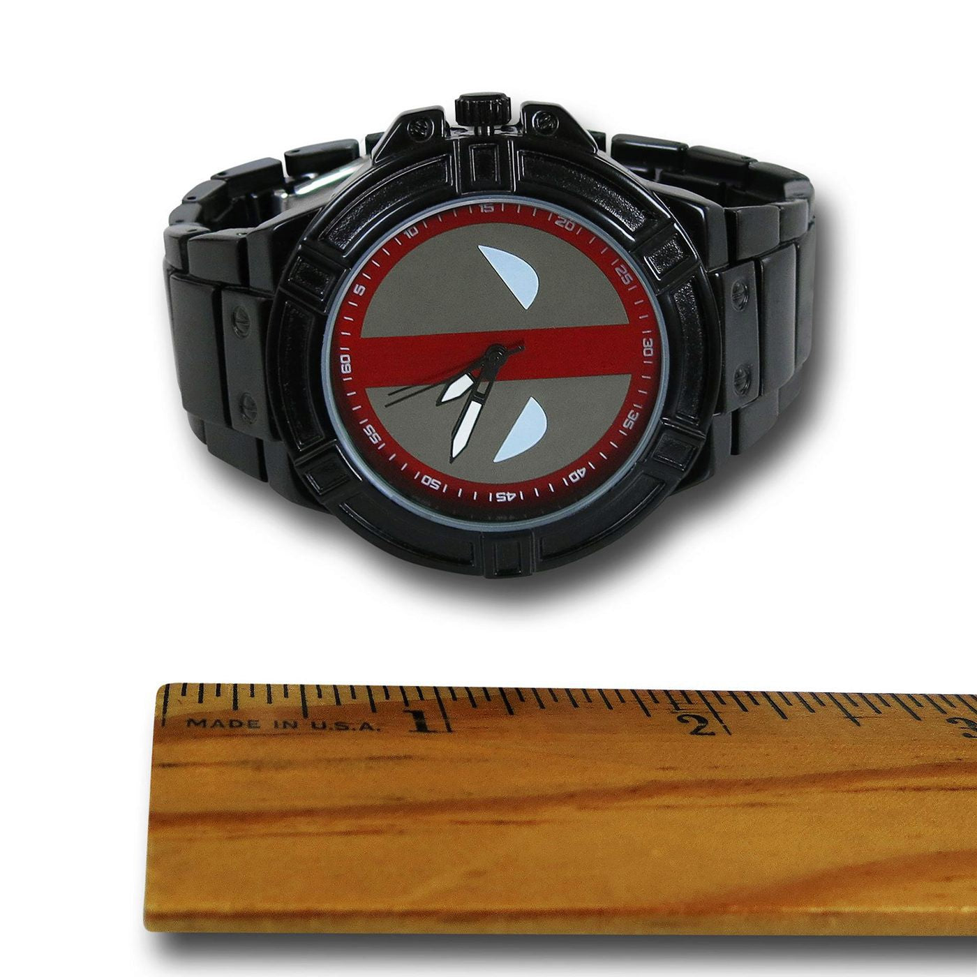 The one size fits most Deadpool Symbol Black Watch with Metal Band is a spiffy watch that is presented to survivors of the Weapon X program...or you apparently. Hey, I just write what they tell me to! Great as a gift or to keep for yourself, the Deadpool Symbol Black Watch with Metal Band is the first step towards understanding the 4th Wall.