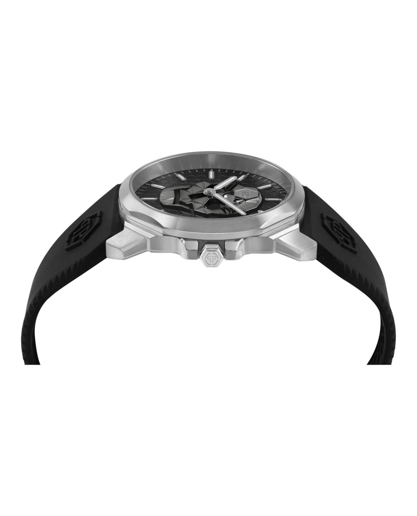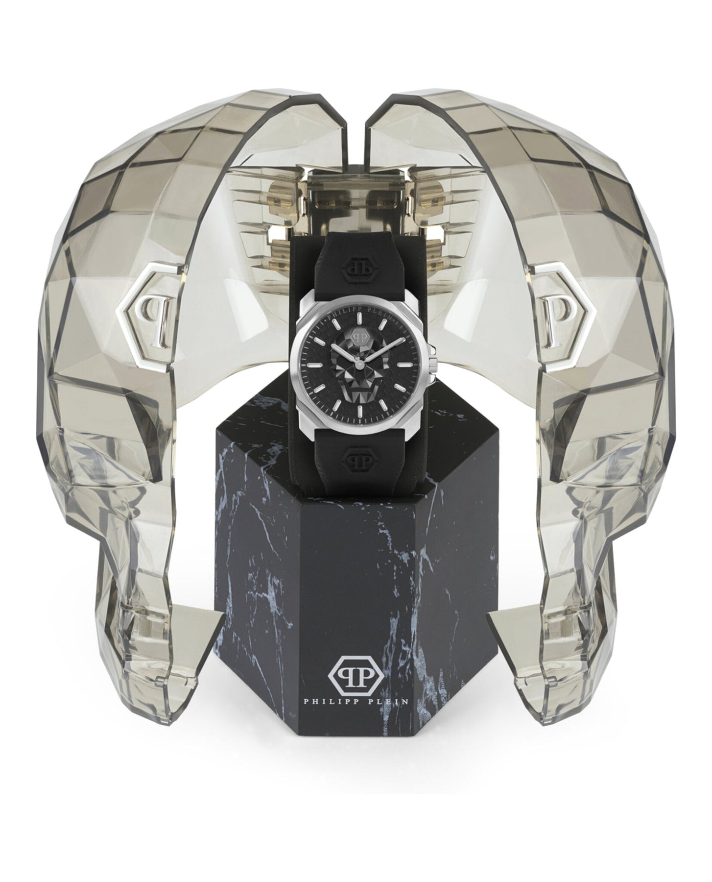 The $kull Mens Watch 40MM Stainless Steel Case Black Guilloché Dial Black Silicone Strap