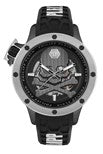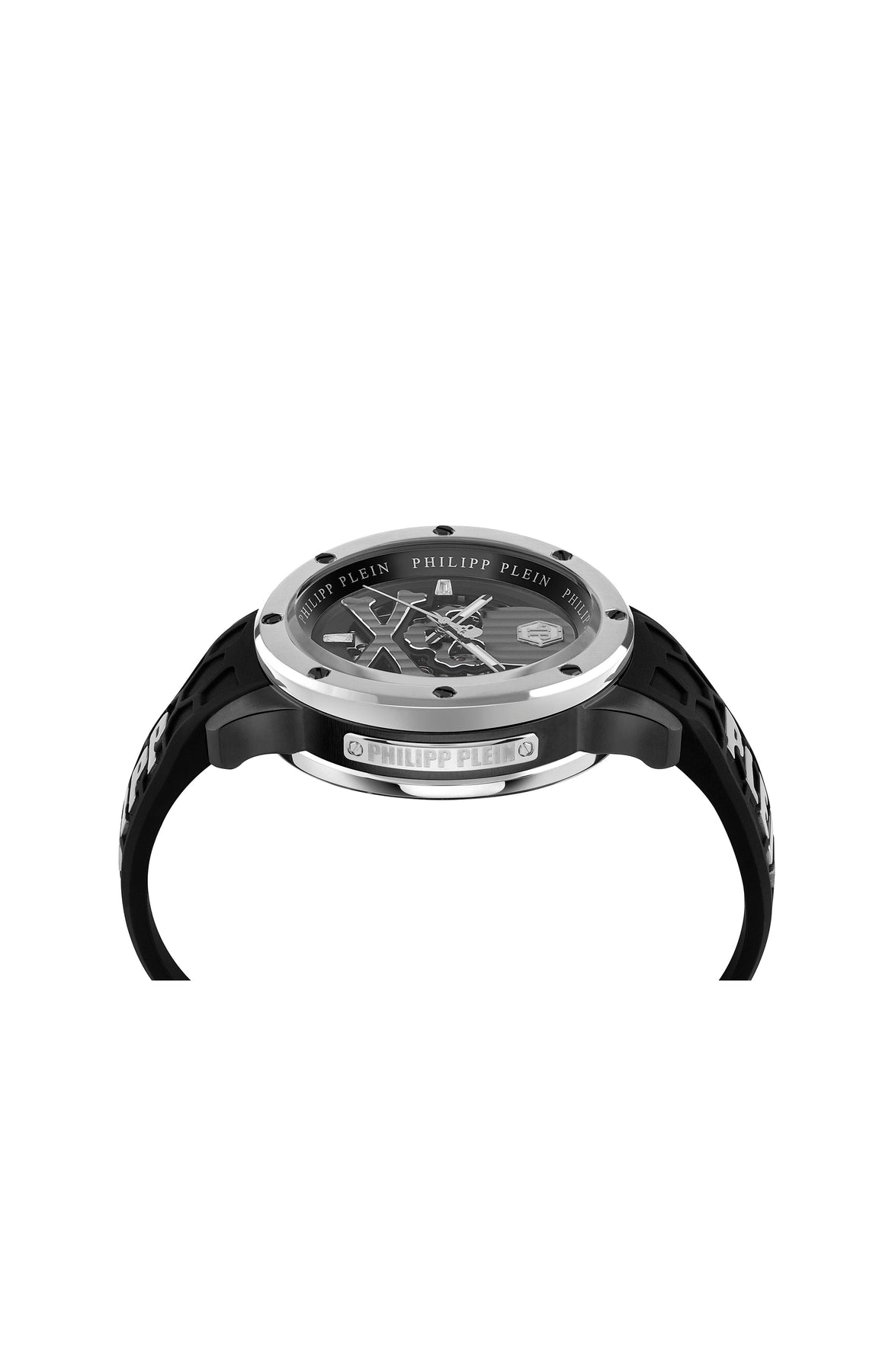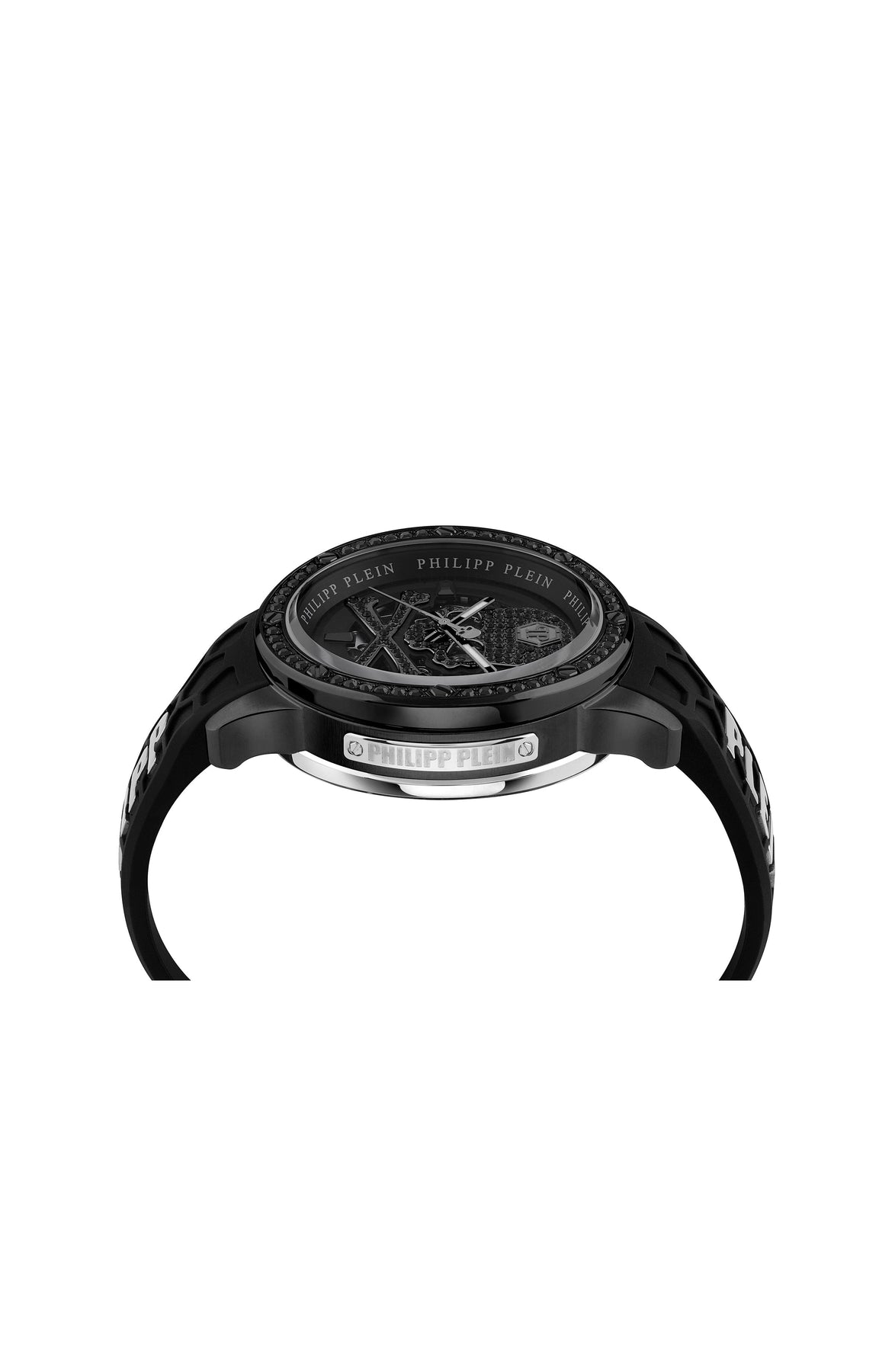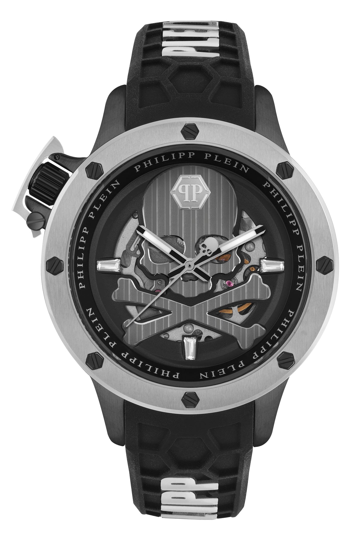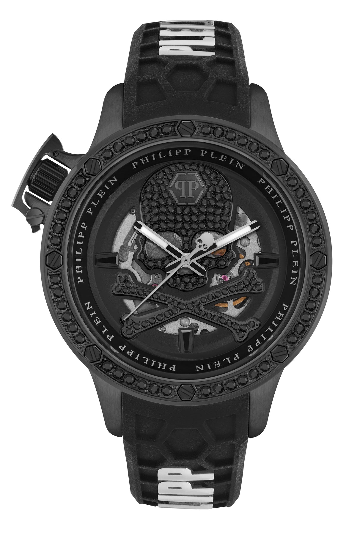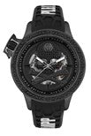 Plein Rich Mens Watch 46MM IP Black Case Black Skeleton Dial Silicone Strap