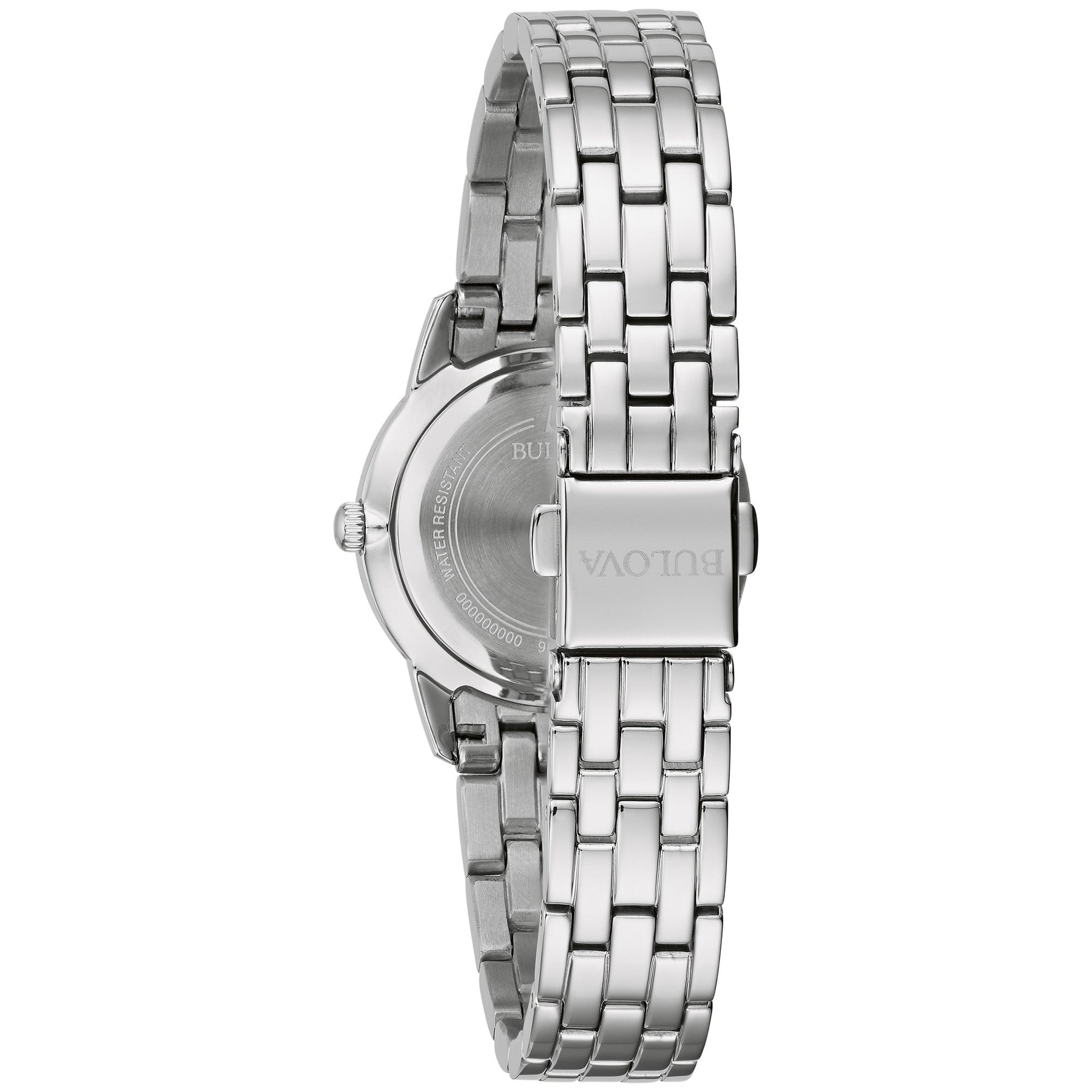 Case Material: Stainless Steel - Case Diameter: 32mm - Case Crystal: Mineral Crystal - Water Resistance: 30 m (100 feet) - Dial Color: Mother-of-Pearl - Band: Silver Stainless Steel Bracelet - Movement: Quartz - Made in China