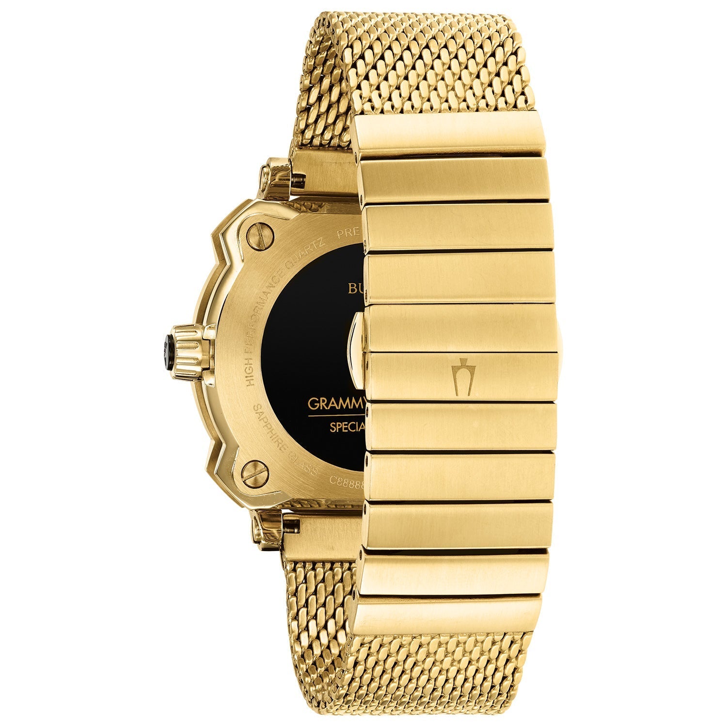 Collection Name: Grammy, Gender: Women's, Case Shape: Round, Case Material: Stainless Steel, Case Back: Closed, Case Width (mm): 38, Case Thickness (mm): 11.3, Case Crystal: Mineral Crystal, Case Water Resistance: 30 m (100 feet), : Grammy, Dial Color: Black, Band Type: Bracelet, Band Material: Stainless Steel, Band Color: Gold, Band Length (in.): , Band Size Width (mm): , Band Clasp: Deployment Clasp, Features: , Movement Type: Quartz, Movement Caliber: , Movement Crown: Pull and Push Crown, Country of Origin: Made in China