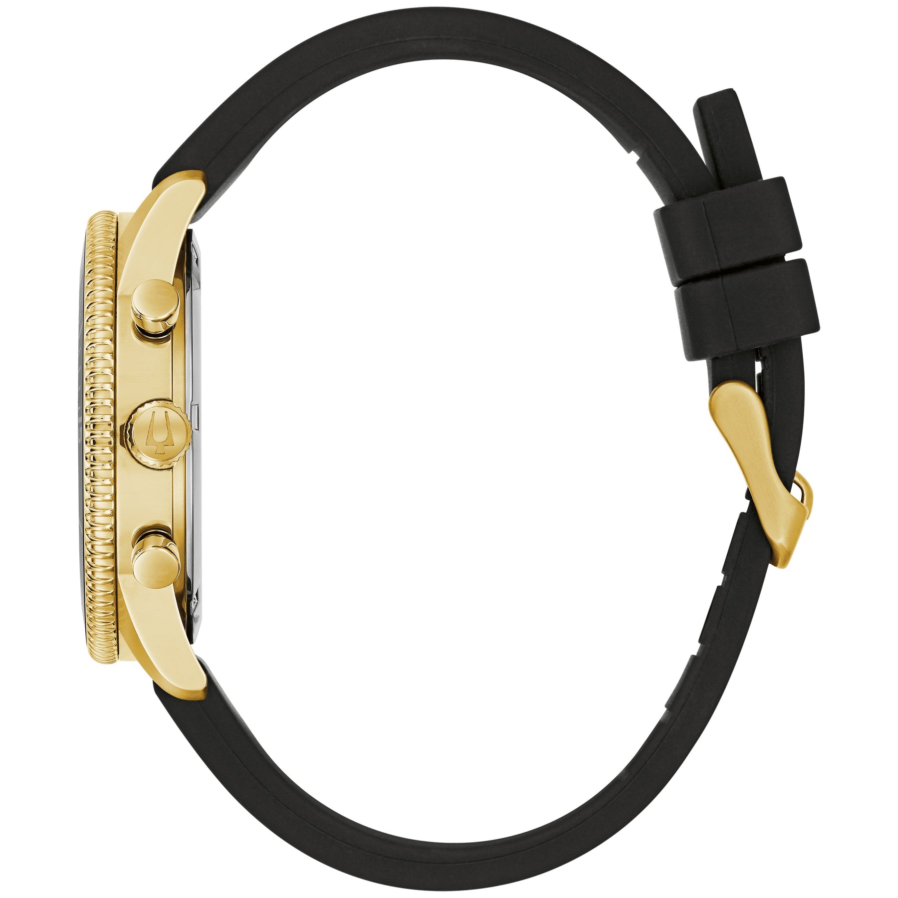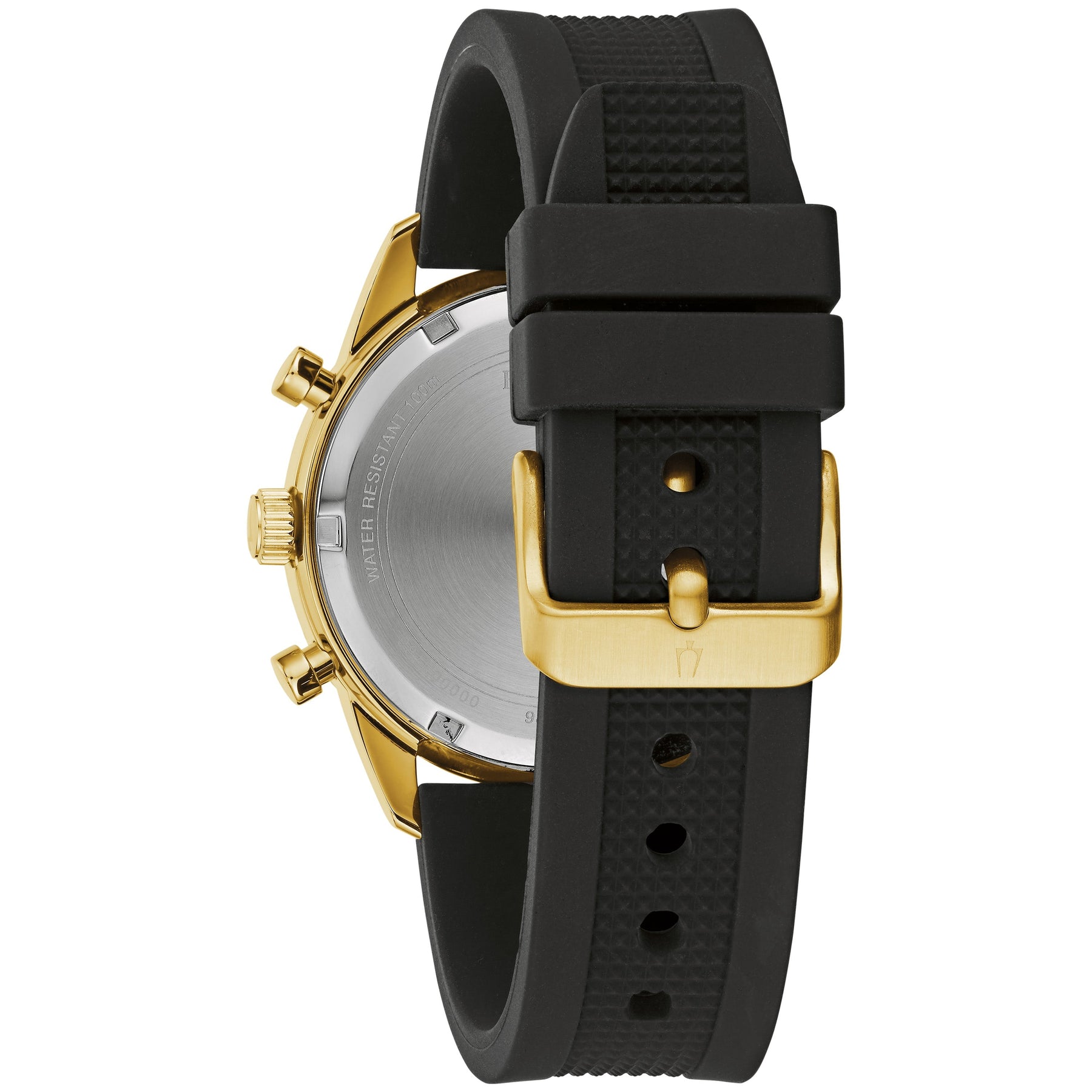 Case Material: Stainless Steel - Case Diameter: 45mm - Case Crystal: Mineral Crystal - Water Resistance: 100 m (330 feet) - Dial Color: Black - Band: Black Silicone Strap - Movement: Quartz - Features: Chronograph - Made in China