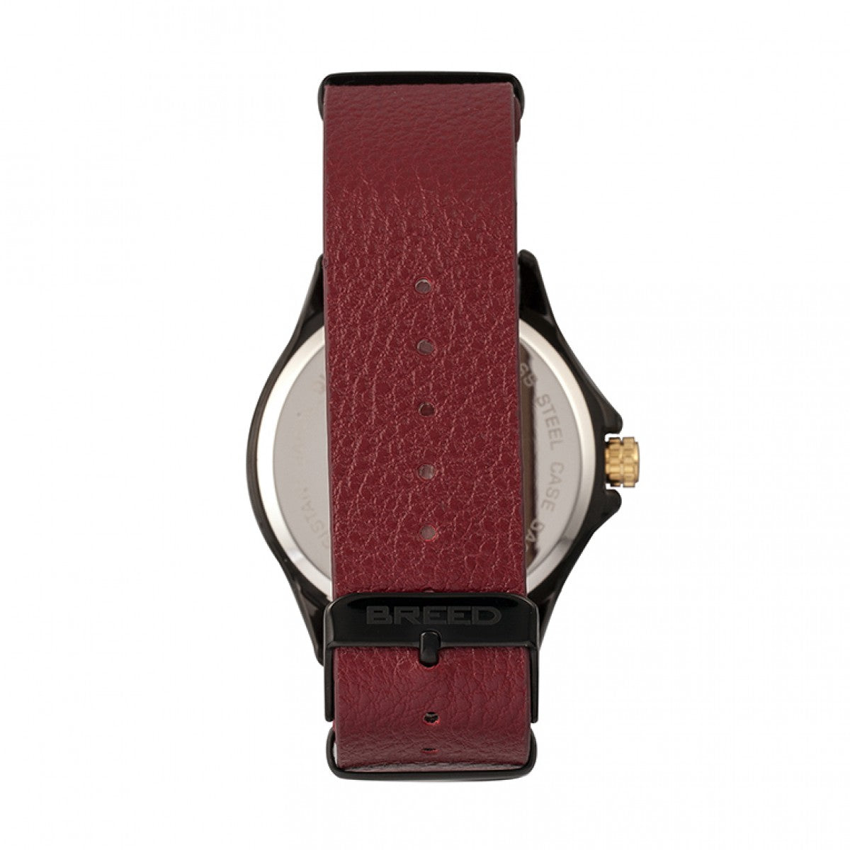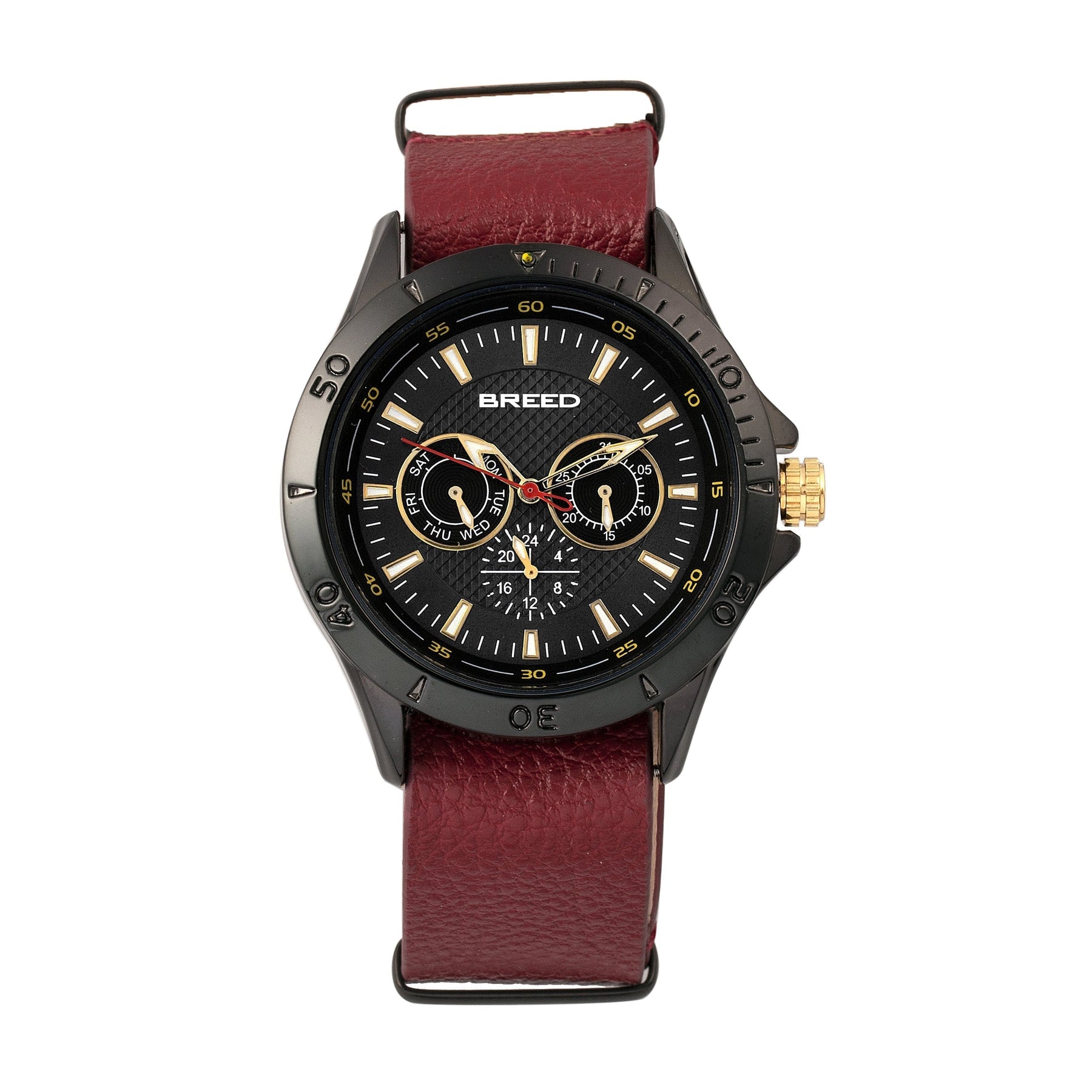 Breed Dixon Leather-Band Watch w/Day/Date - Black/Red