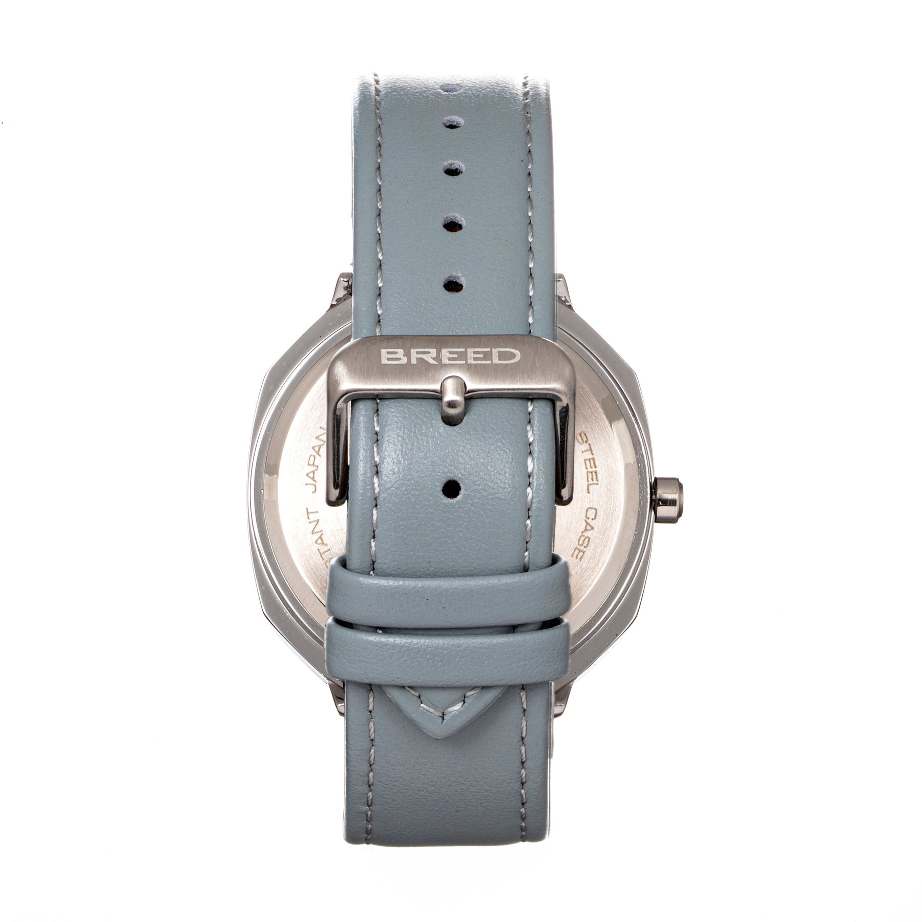 Breed Revolver Leather-Band Watch w/Day/Date - Grey/Navy