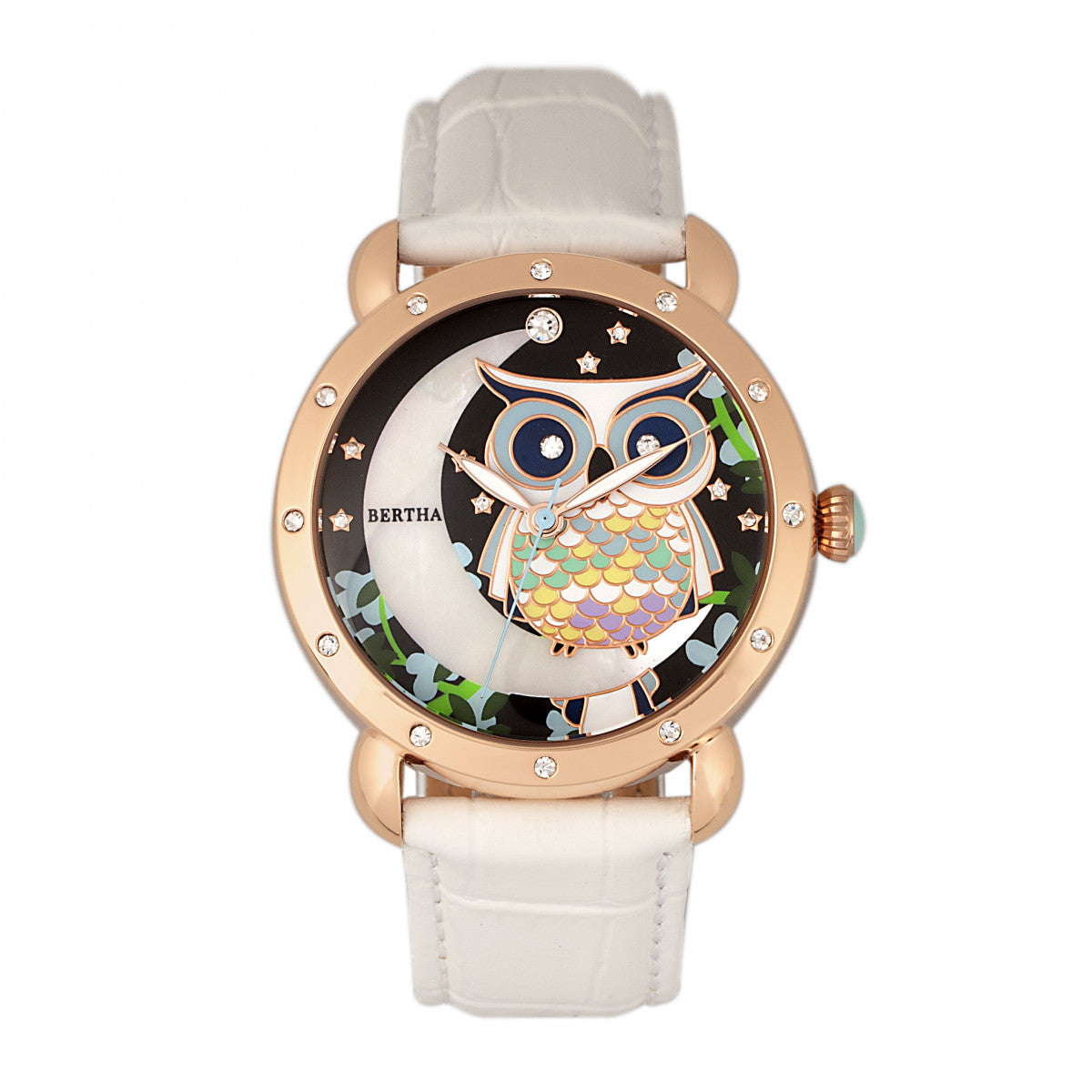 Bertha Ashley MOP Leather-Band Ladies Watch - Rose Gold/White