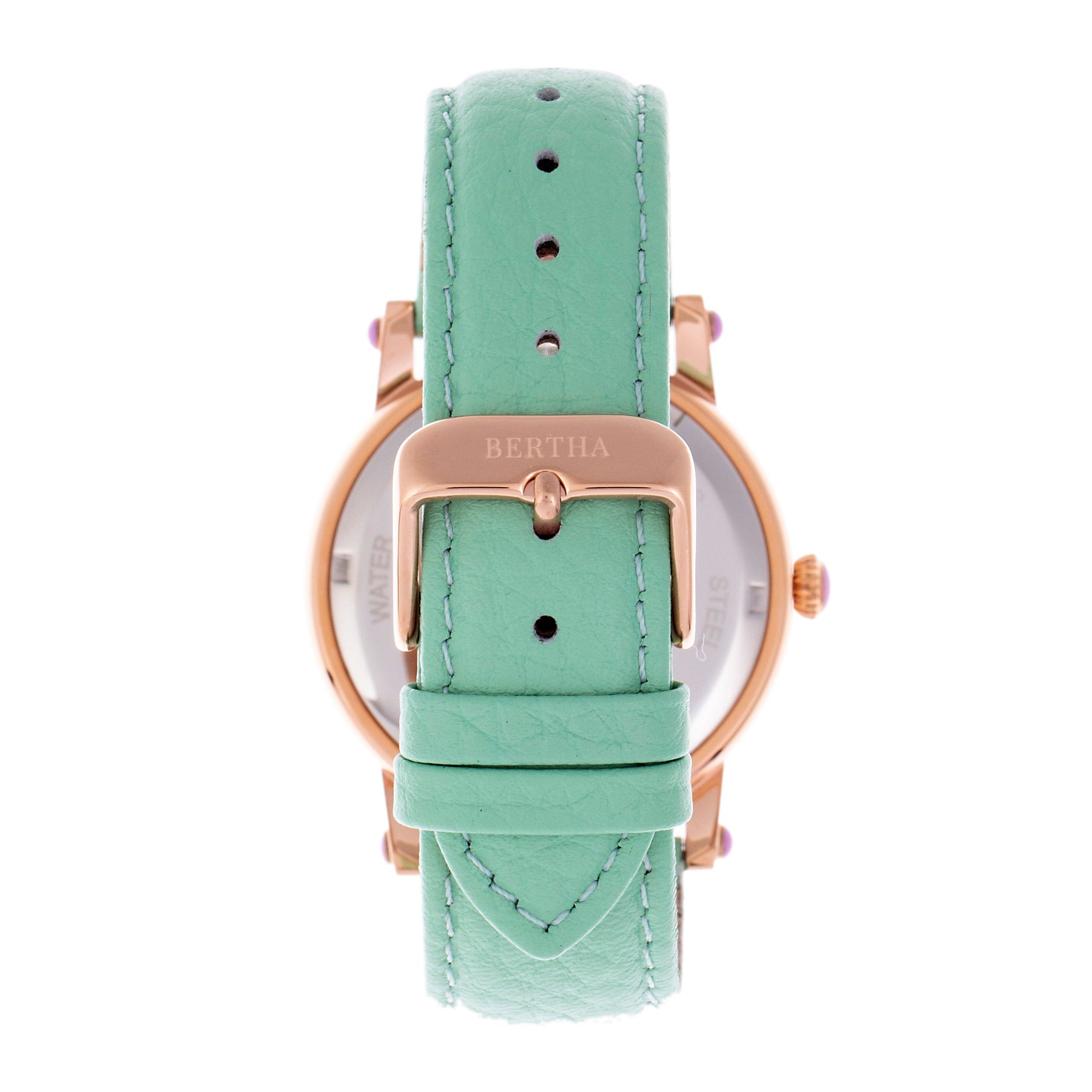 Bertha Betsy MOP Leather-Band Ladies Watch - Rose Gold/Mint