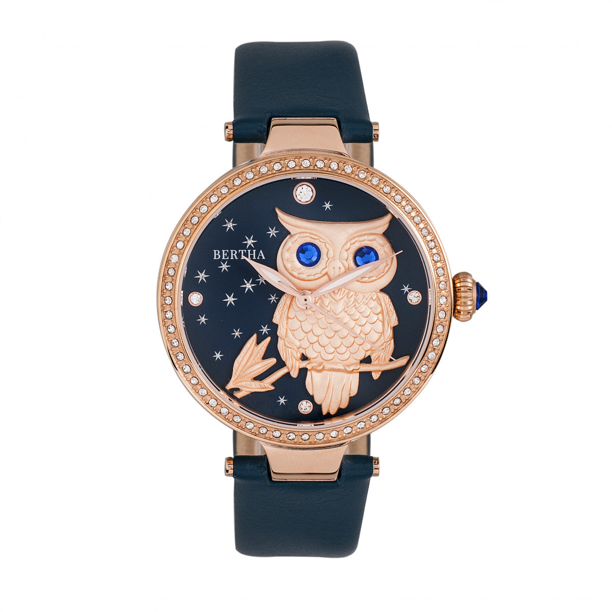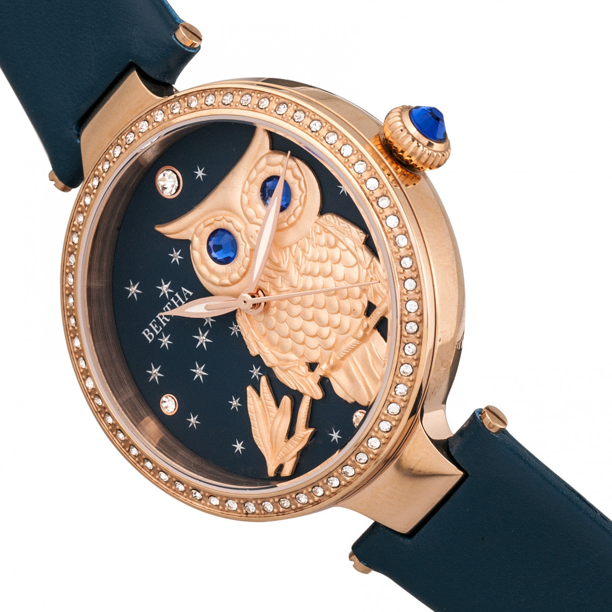 Bertha Rosie Leather-Band Watch - Rose Gold/Navy