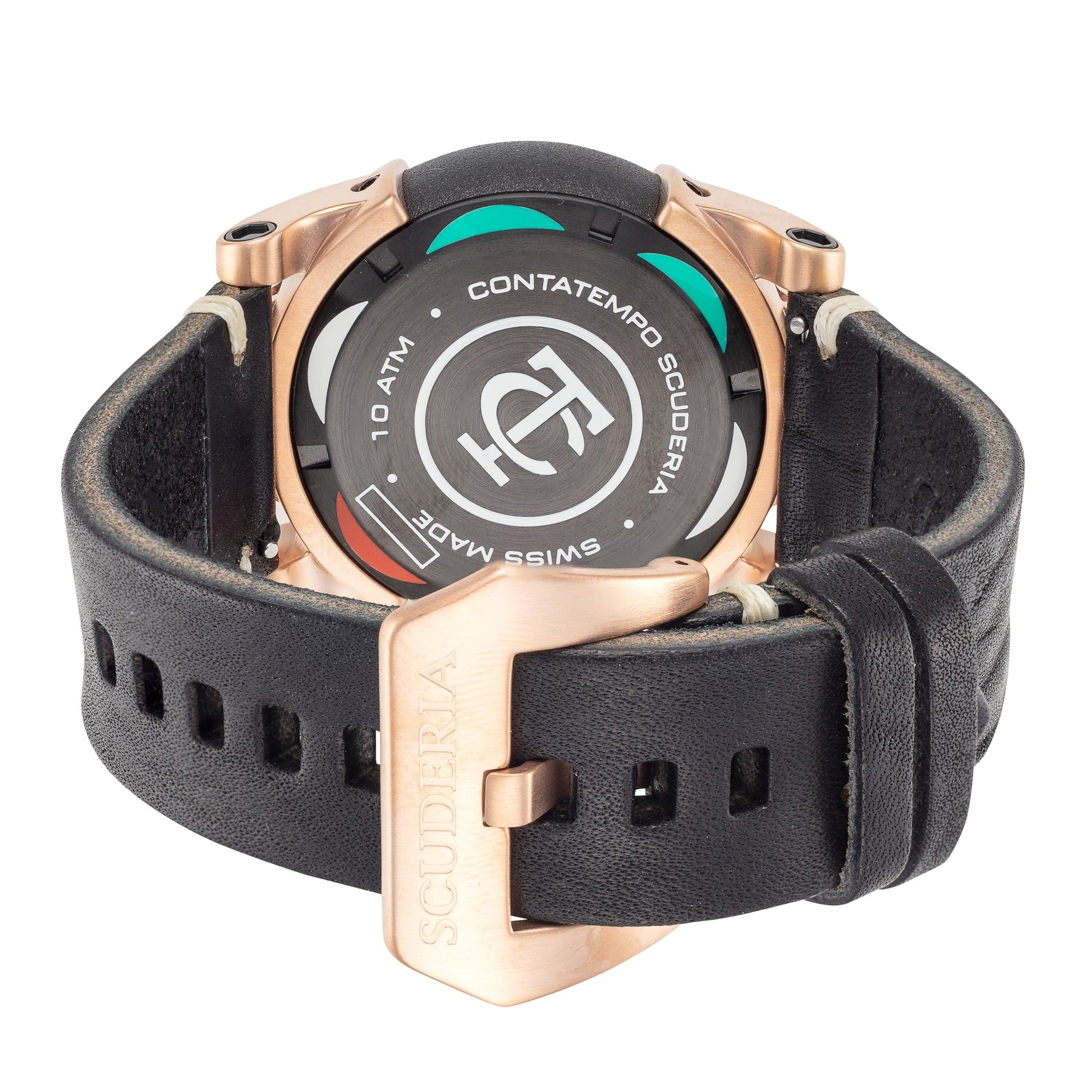 Due Tempi Collection, Men's Round, Stainless Steel, Sapphire Crystal Scratch Resistant, 100 m (330 feet) Water Resistance, Leather Band,Pin Buckle, Quartz Watch