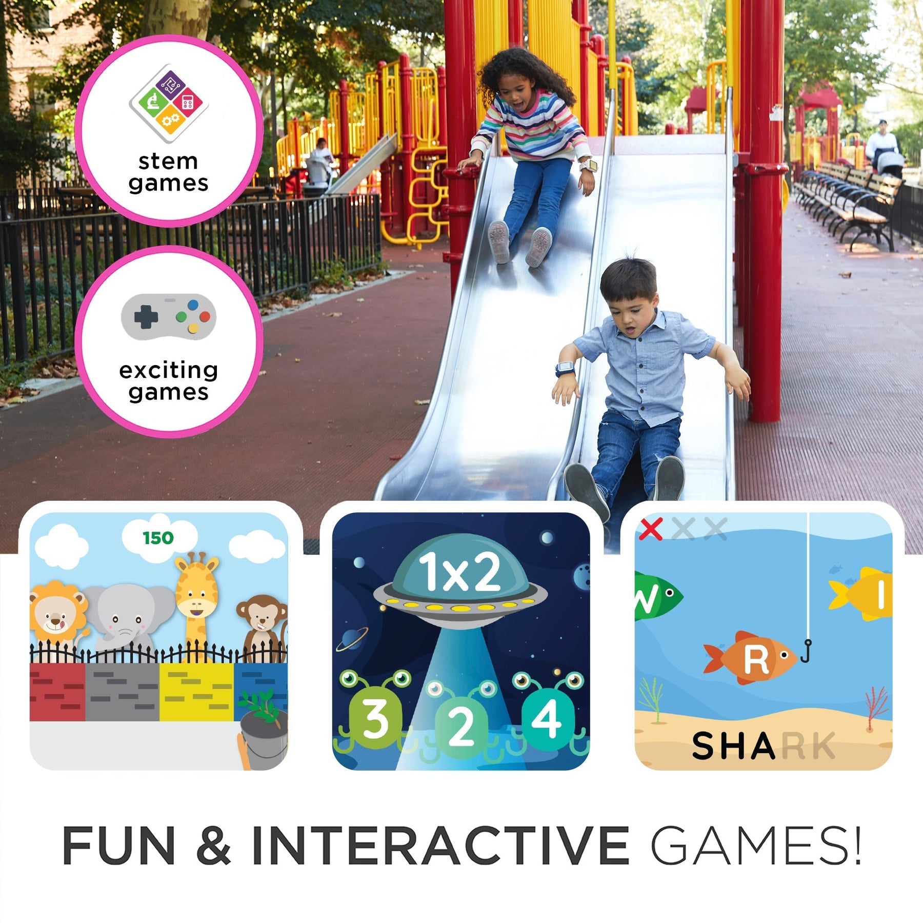 Reward your little superhero with The Wonder Woman PlayZoom 2 Kids Smartwatch. This tech gadget features a swivel camera, customizable clock faces, 30 learning and active games, 20 tunes to explore, lullabies, melodies, bed-time stories, and songs. Plus the PlayZoom doesn't connect to a cellular device and comes with an In Case of Emergency (ICE) Card on the watch, so it's free of GPS tracking and completely safe!