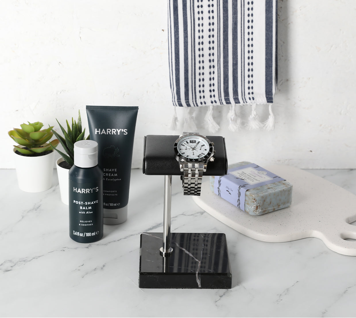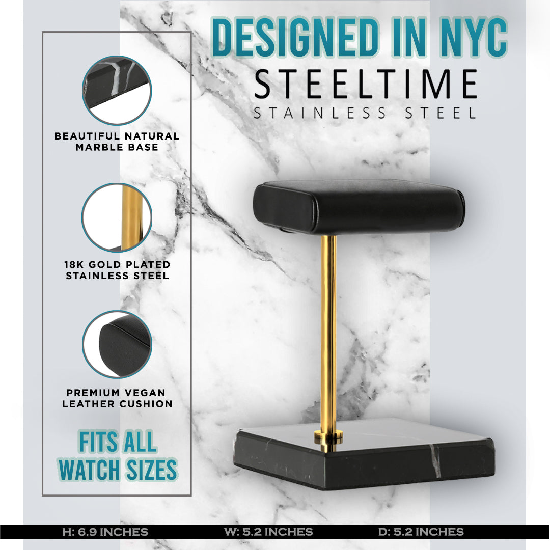 Showcase your luxury timepieces with our premium padded leather watch display. Designed to hold up to two styles of any watch, and most bracelet styles. Our watch stand is the perfect gift for all timepiece enthusiasts, and an elegant way to display and protect your favorite watches.