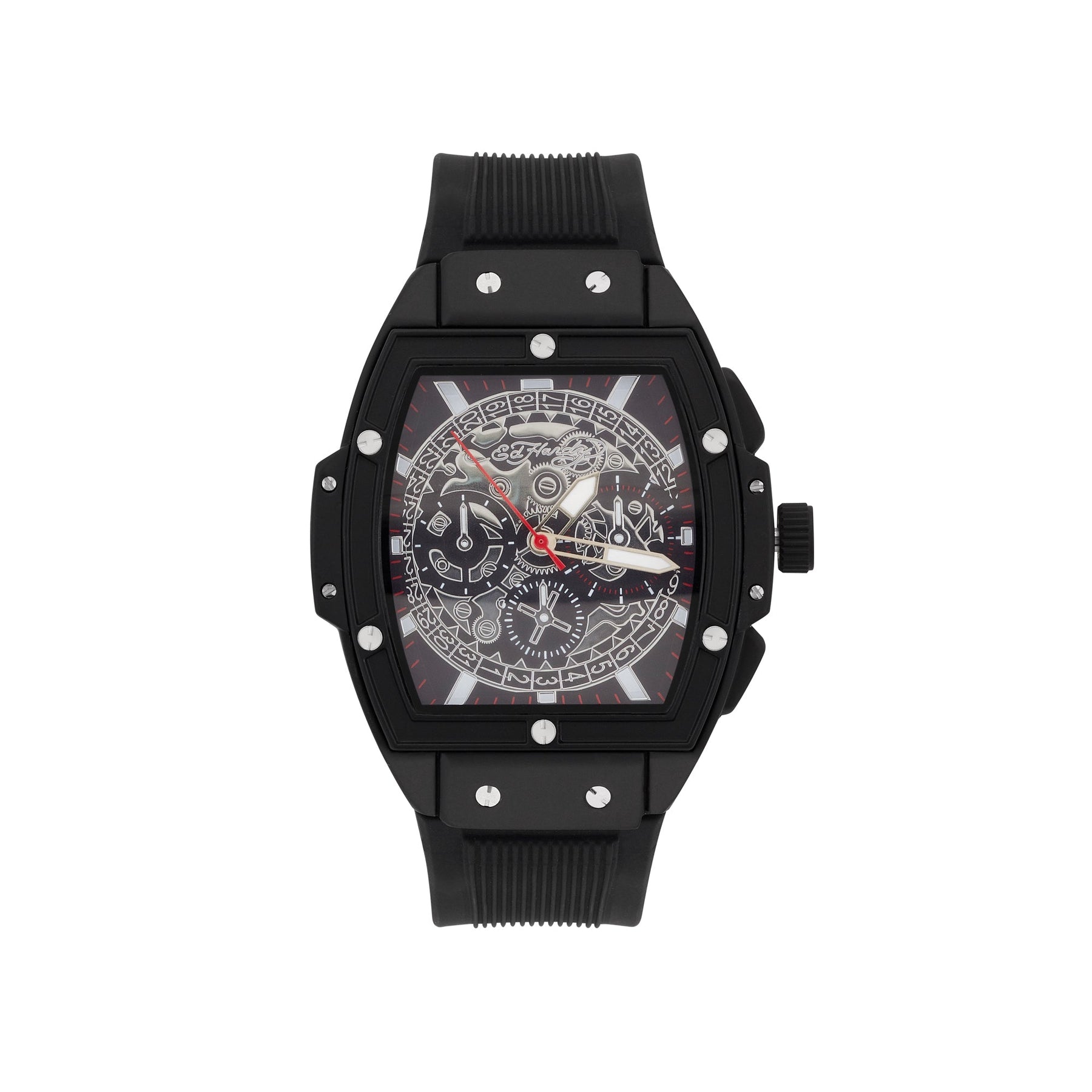 The Ed Hardy men's timepiece is a sophisticated and stylish choice for any special man in your life, boasting a metal case with an impressive skeleton center and detailed index markers on the dial. Perfect for a father, husband, or boyfriend, this high-quality watch can make an ideal gift for any of your special loved ones. Style 50446B-42-B05