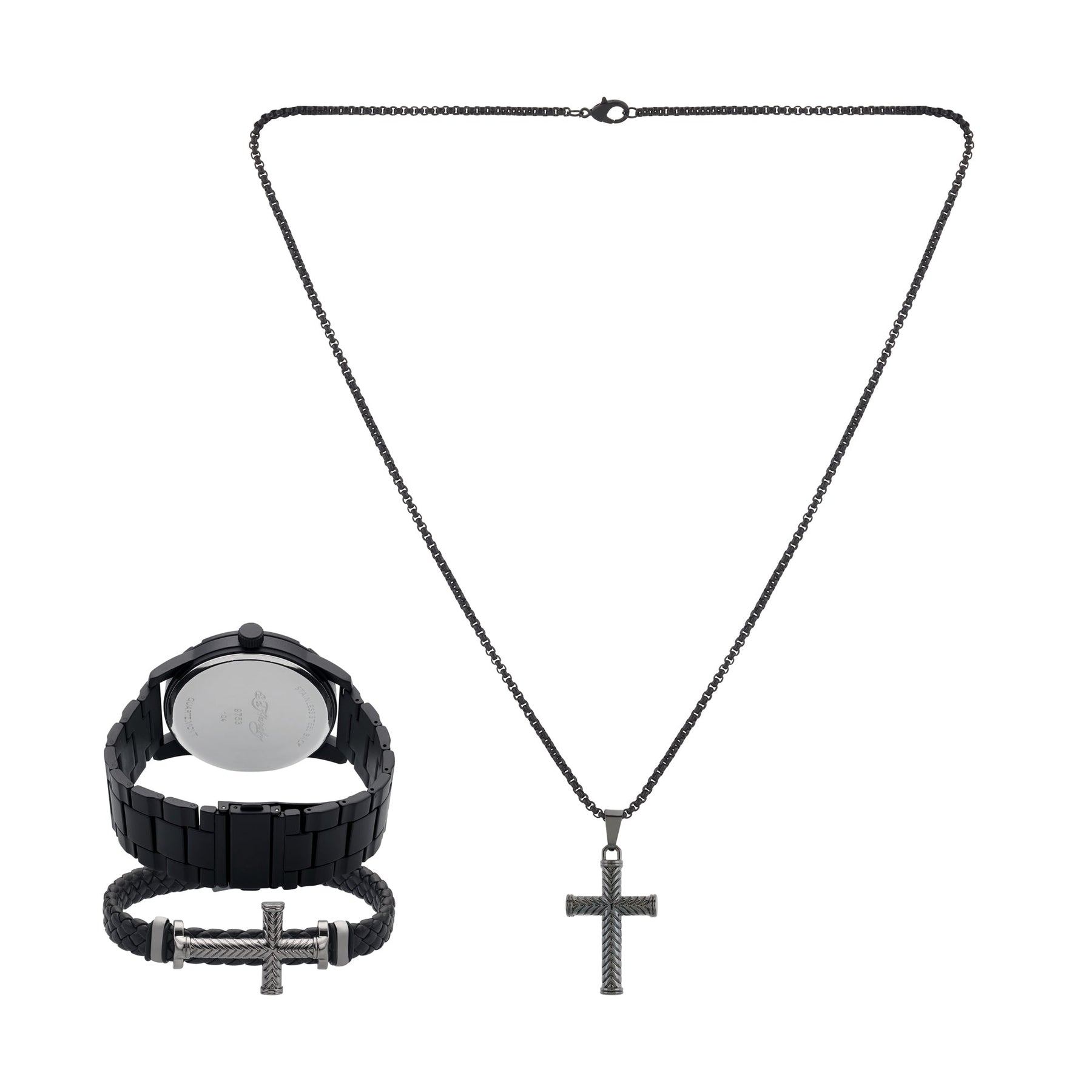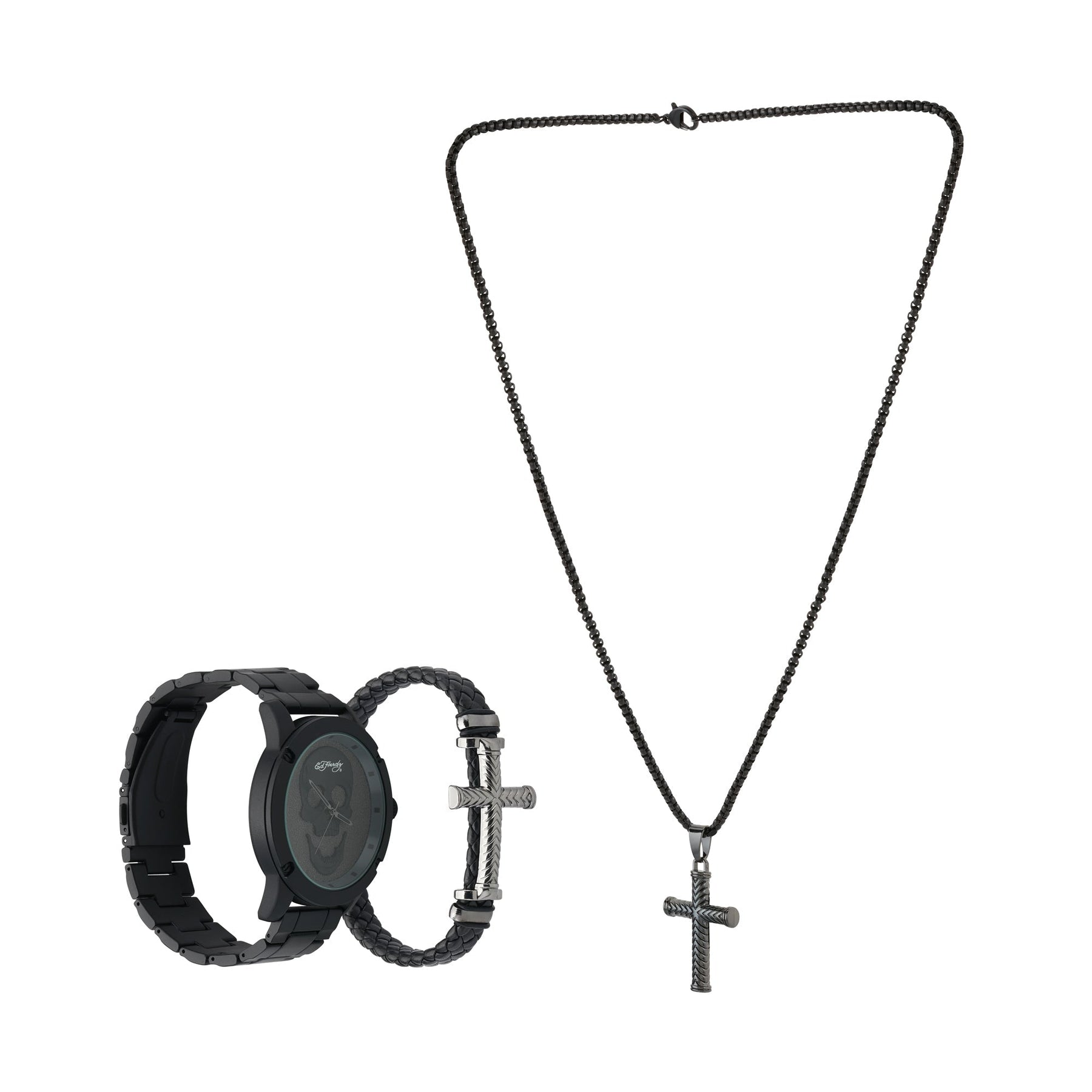 Don Ed Hardy is considered by many to be the Godfather of Tattoo. Wear this skull dial watch along with the "Cross" pendant necklace and braided bracelet set to prove you're a style maverick not a trend follower. Perfect gift for special man. Style 9753B-42-D02