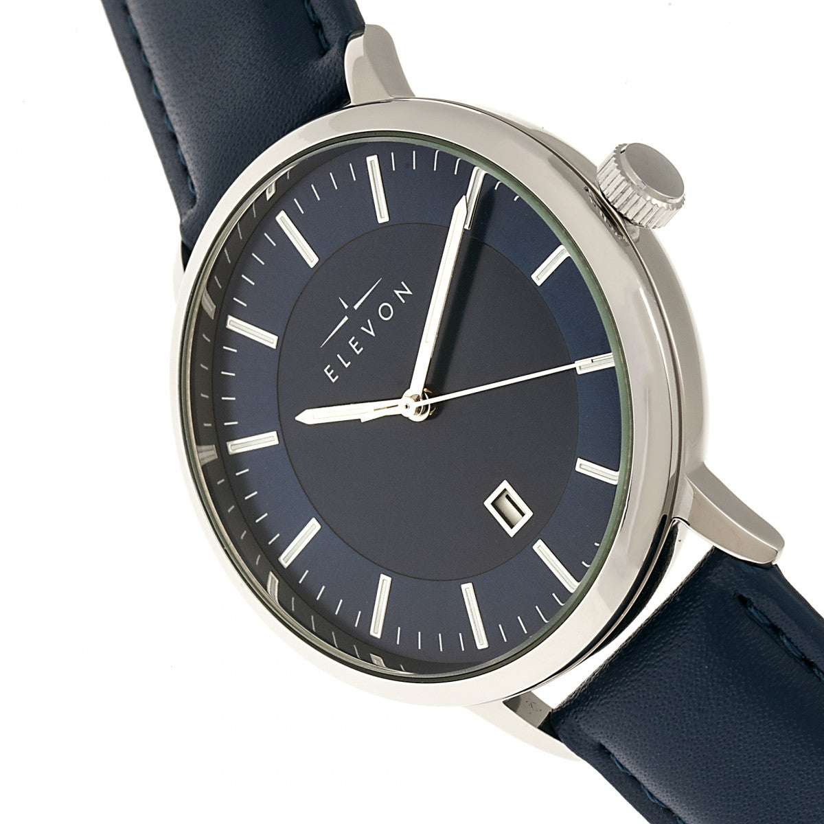 Elevon Vin Leather-Band Watch w/Date - Silver/Blue