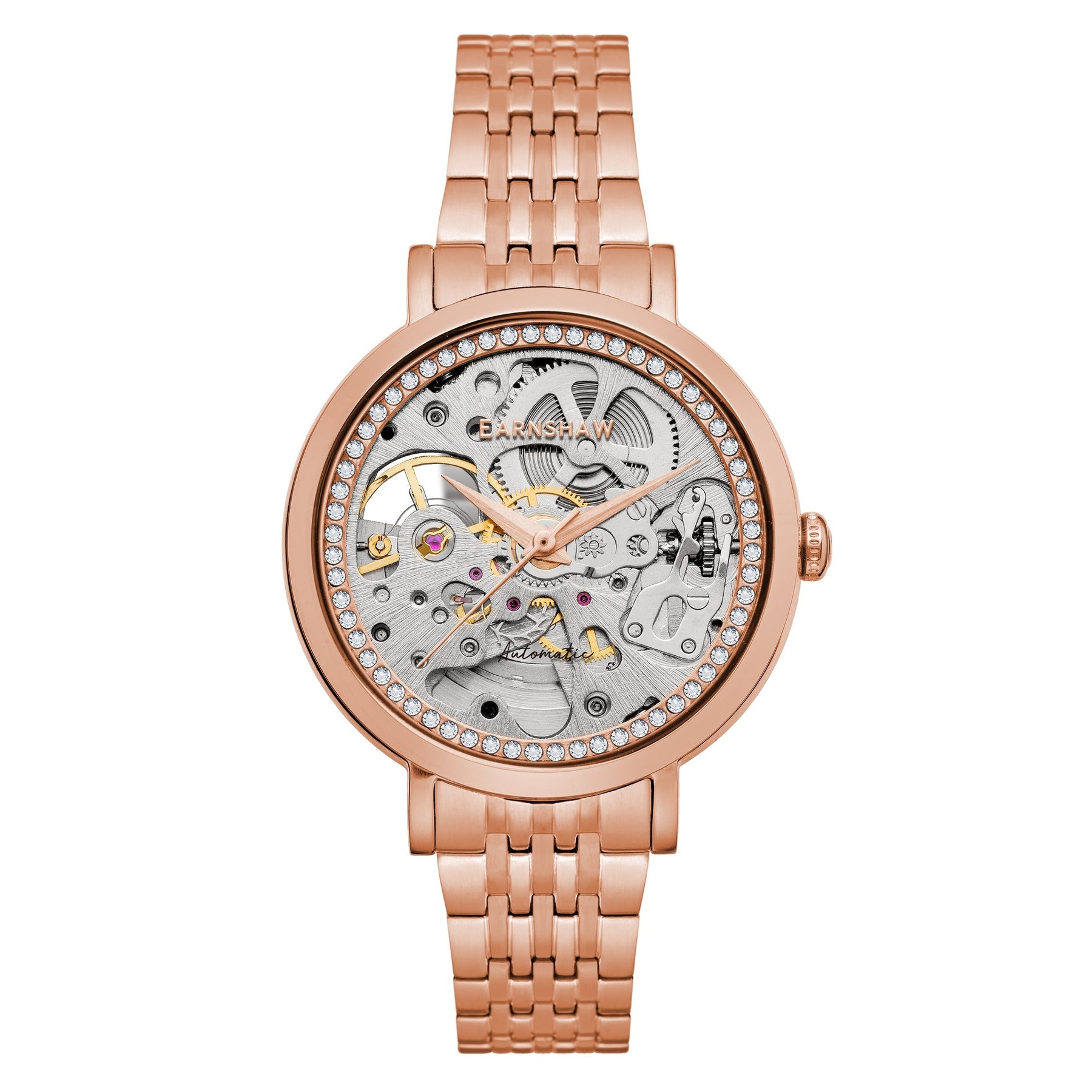 Collection Name: Nightingale, Gender: Women's, Case Shape: Round, Case Material: Stainless Steel, Case Back: Exhibition, Case Width (mm): 34, Case Thickness (mm): 7.6, Case Crystal: Mineral Crystal, Case Water Resistance: 50 m (165 feet), : Nightingale, Dial Color: Rose Gold, Band Type: Bracelet, Band Material: Stainless Steel, Band Color: Rose Gold, Band Length (in.): 8, Band Size Width (mm): 14, Band Clasp: Deployment Clasp, Features: , Movement Type: Automatic, Movement Caliber: PTS - P2650SSZ, Movement Crown: Pull and Push Crown, Country of Origin: Made in China