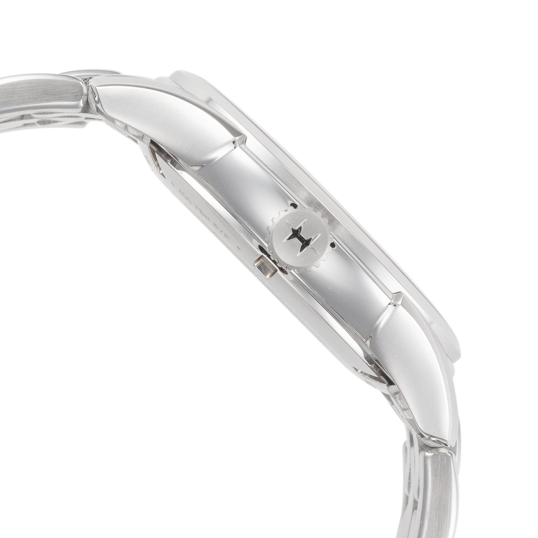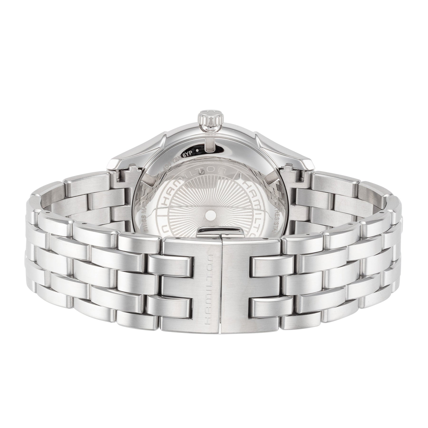 Collection Name: Jazzmaster, Case Shape: Round, Case Material: Stainless Steel, Case Width (mm): 40, Case Crystal: Sapphire Crystal Scratch Resistant, Case WAter Resistance: 50 m (165 feet), Dial Color: Blue, Band Type: Bracelet, Band Material: Stainless Steel, Band Clasp: Butterfly Clasp, Movement Type: Quartz, Country of Origin: Made in Switzerland