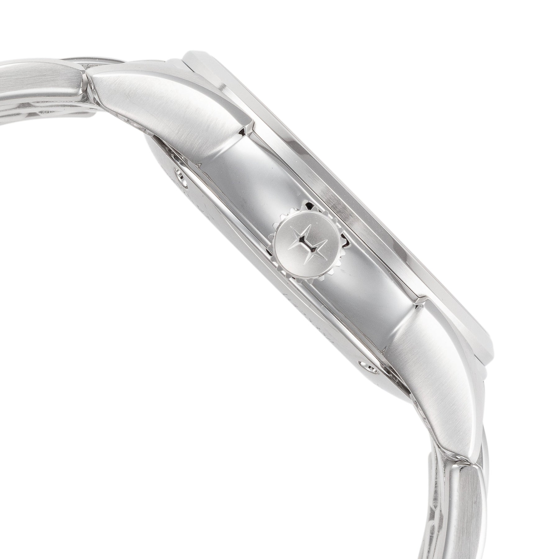 Collection Name: Jazzmaster, Case Shape: Round, Case Material: Stainless Steel, Case Width (mm): 40, Case Crystal: Sapphire Crystal Scratch Resistant, Case WAter Resistance: 50 m (165 feet), Dial Color: Silver, Band Type: Bracelet, Band Material: Stainless Steel, Band Clasp: Deployment Clasp, Movement Type: Automatic, Country of Origin: Made in Switzerland