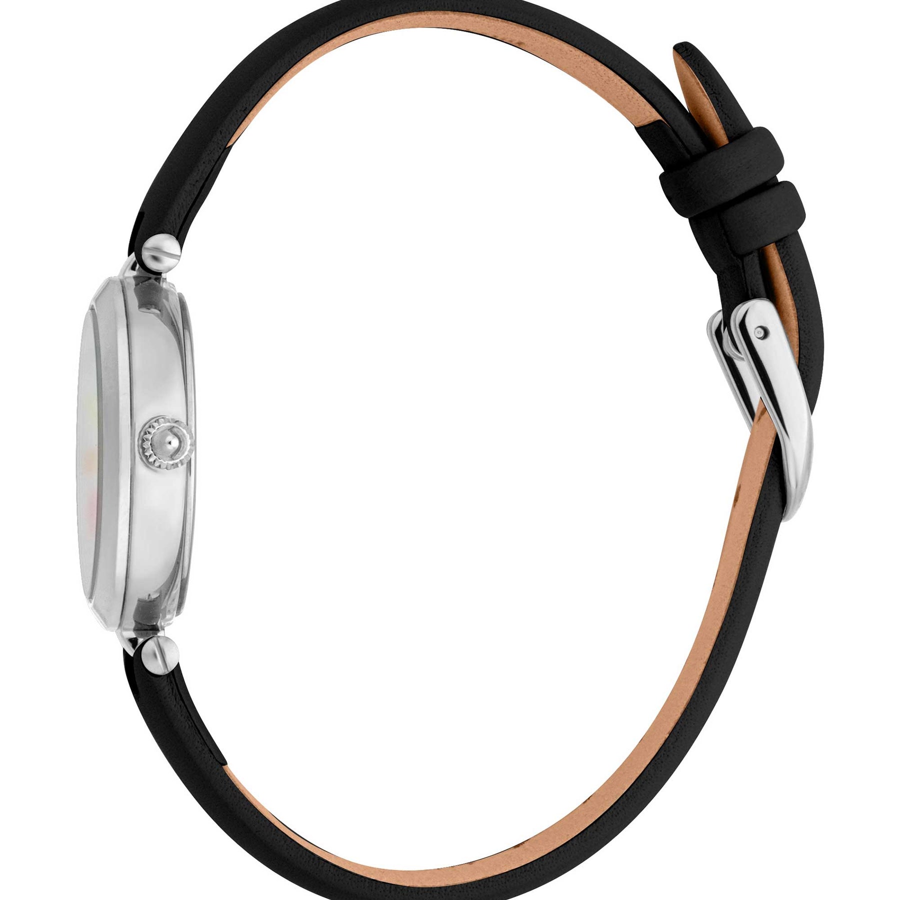 Collection Name: Glam Chic, Gender: Women's, Case Shape: Round, Case Material: Stainless Steel, Case Back: , Case Width (mm): 28, Case Thickness (mm): , Case Crystal: Mineral Crystal, Case Water Resistance: 50 m (165 feet), Dial Color: Silver, Band Type: Strap, Band Material: Leather, Band Color: Black, Band Length (in.): 9, Band Size Width (mm): , Band Clasp: Pin Buckle, Features: , Movement Type: Quartz, Movement Caliber: , Movement Crown: , Country of Origin: Made in China,
