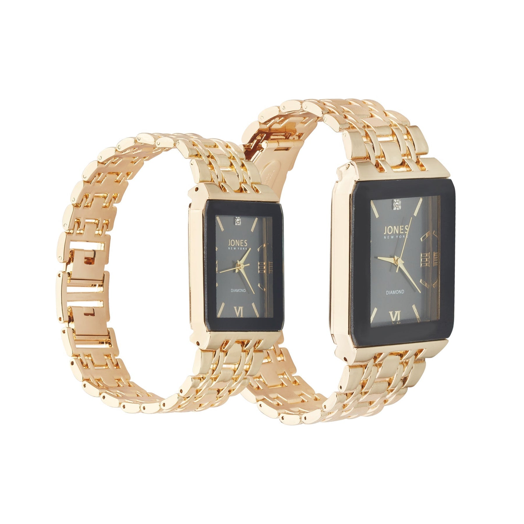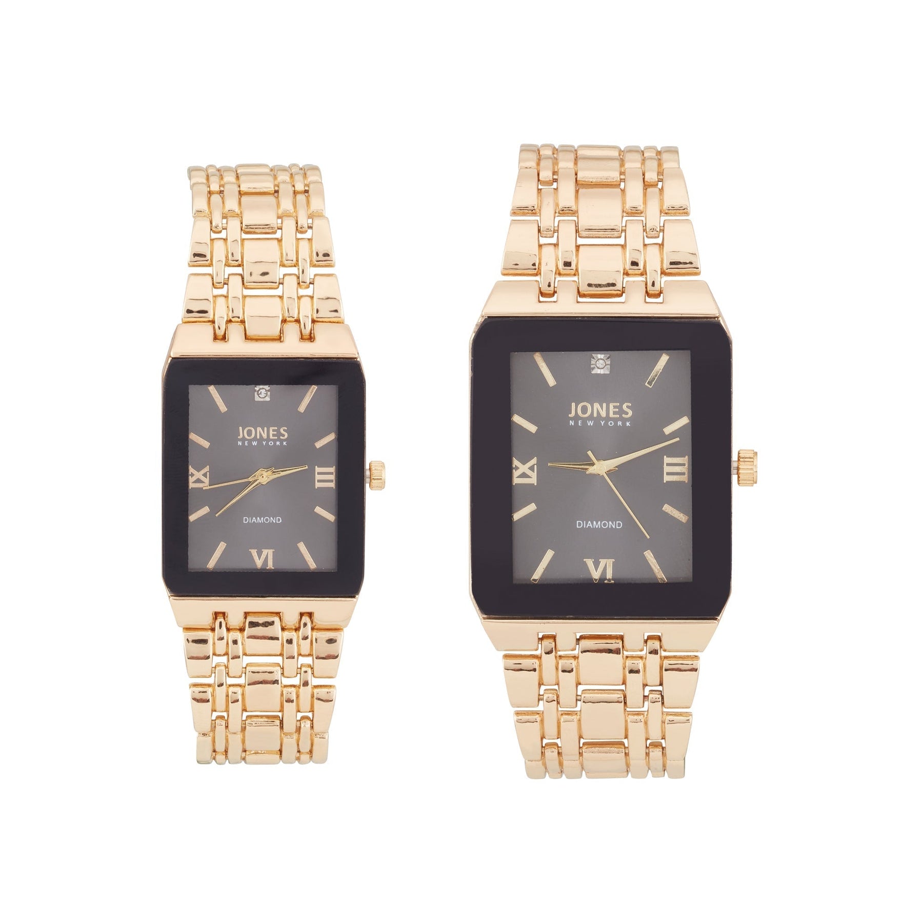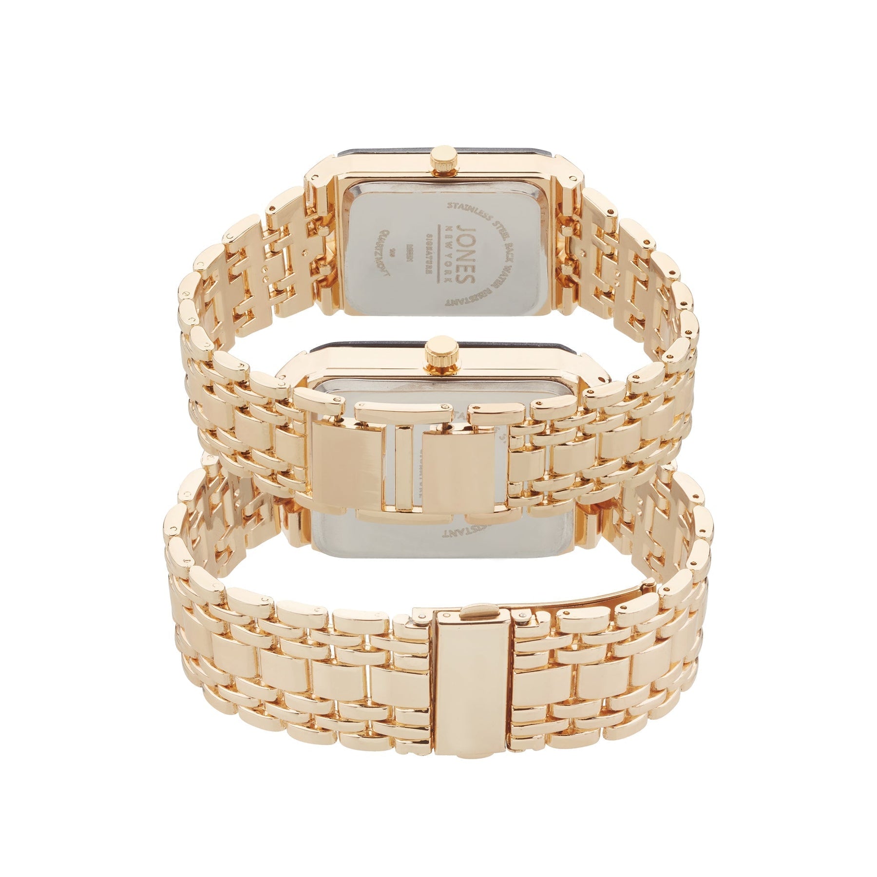 The Jones New York 2 piece analog watch set is a perfect gift for couples who love staying on time. This set includes two elegant watches crafted with gold tone metal and featuring a modern analog design. Both watches have a classic rectangular face accentuated by a gold band that rests on your wrist. The simple, contemporary design allows them to be tastefully dressed up or dressed down with whatever the occasion calls for. The watches feature quartz movements for accuracy, a case thickness of 10mm and 8mm for a lightweight fit and reliable performance. With this gift set, you can ensure your loved ones are always on time and in style. Style M0021G-42-G27