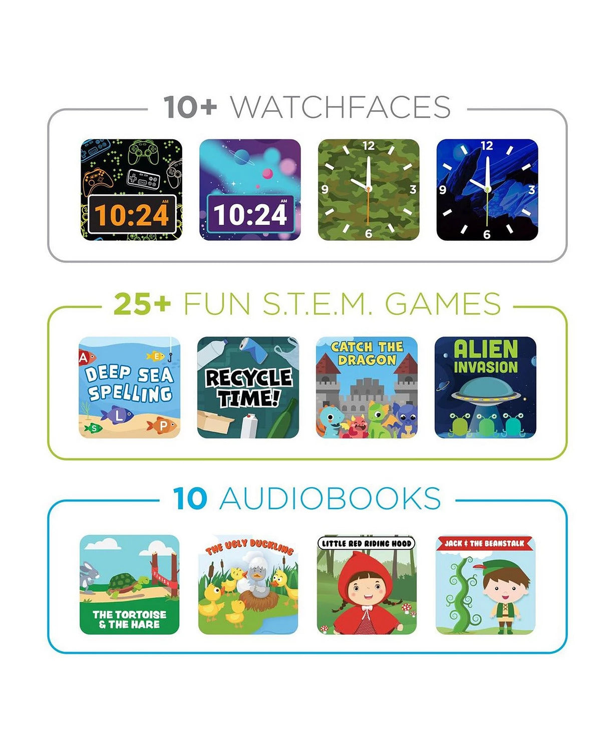 LEARN AND PLAY: This watch combines learning and fun. Help your child learn about STEM, how to tell time, set an alarm, video record, get active and fit, and more—all through the power of play! Kids will be having too much fun to realize they're learning! Plug your headphones into the PlayZoom's headphone jack and listen to your favorite tunes, and listen to lullabies and bed time stories before bed.
